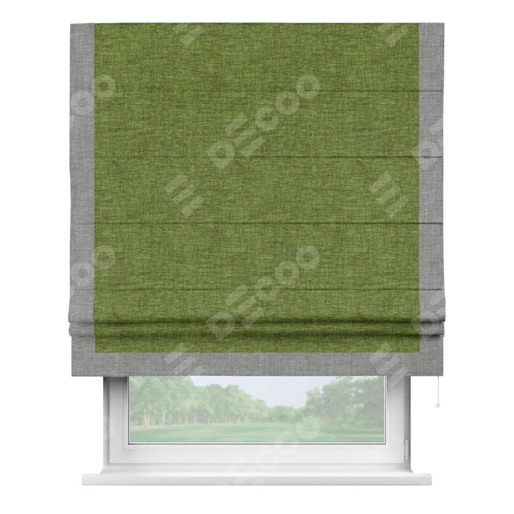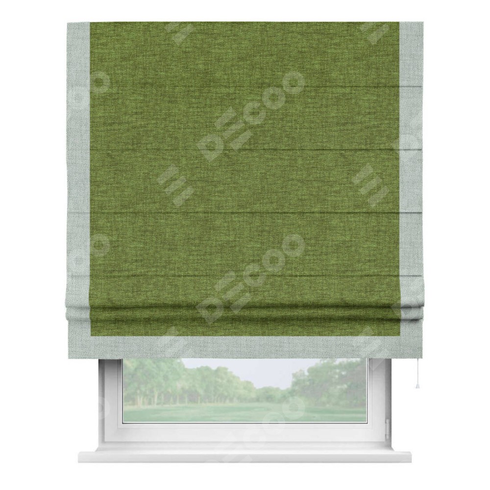 Римская штора «Кортин» с кантом Виктория, для проема, ткань рогожка димаут, салатовый