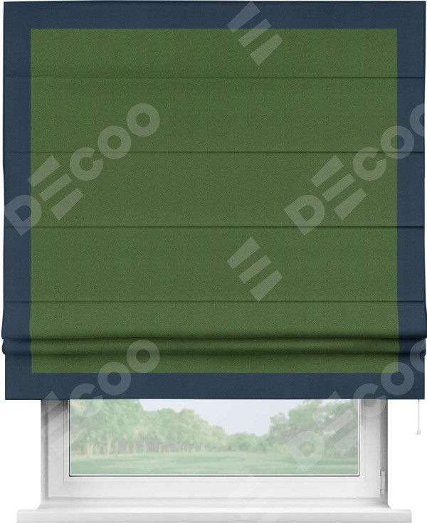 Римская штора «Кортин» с кантом Чесс, для проема, ткань блэкаут однотонный зелёный перламутр