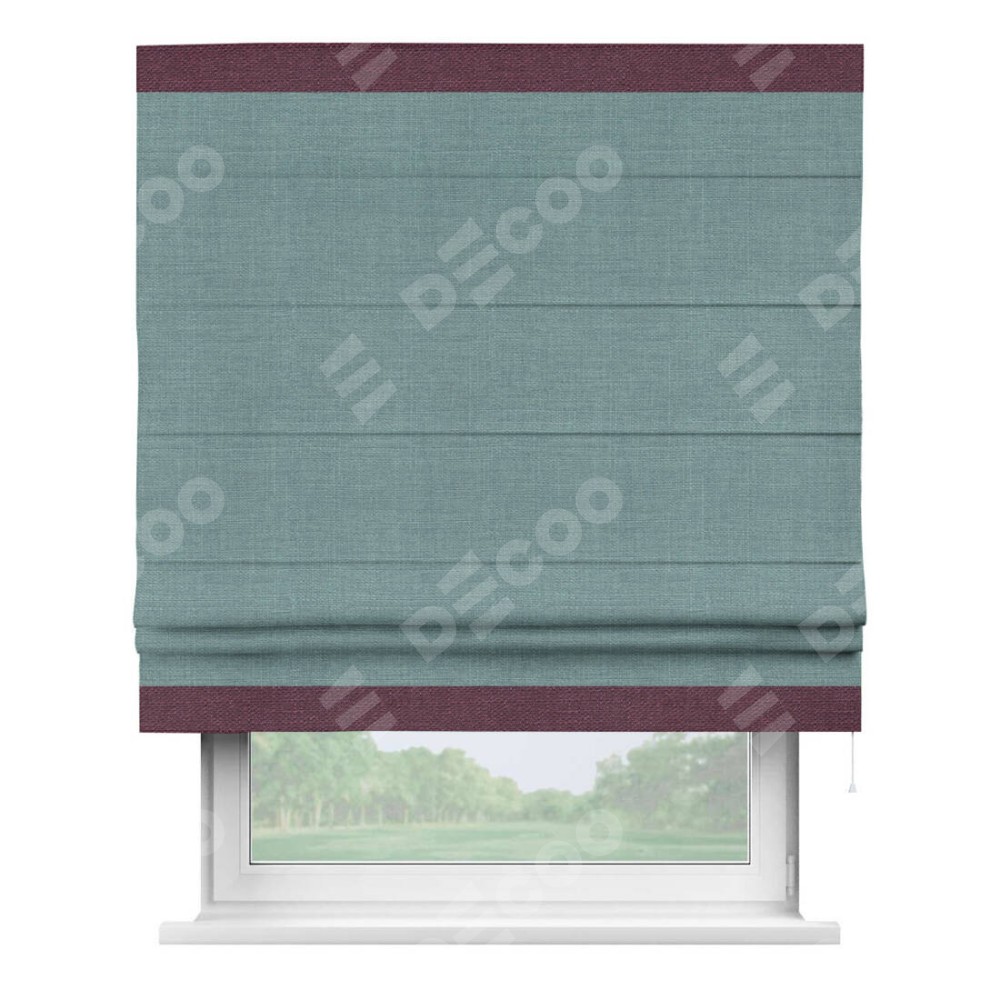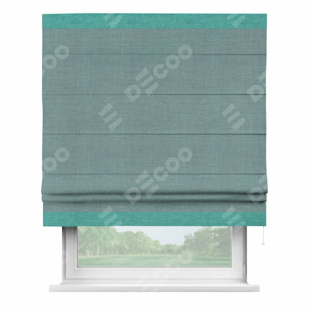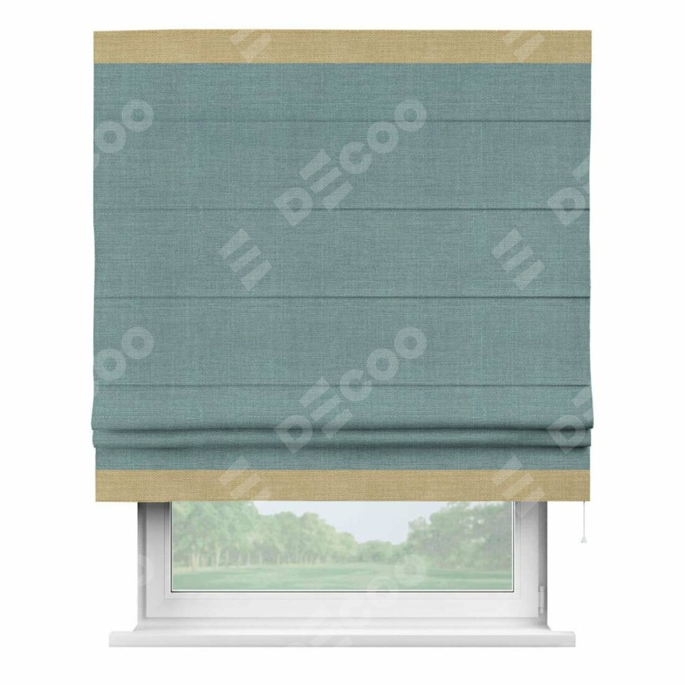 Римская штора «Кортин» с отделкой кантом Горизонт, для проема, лён, цвет голубой