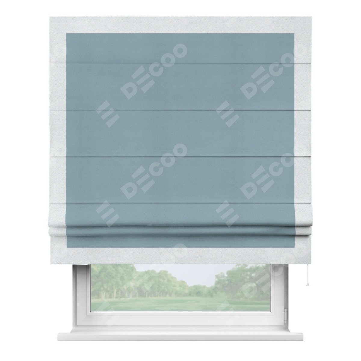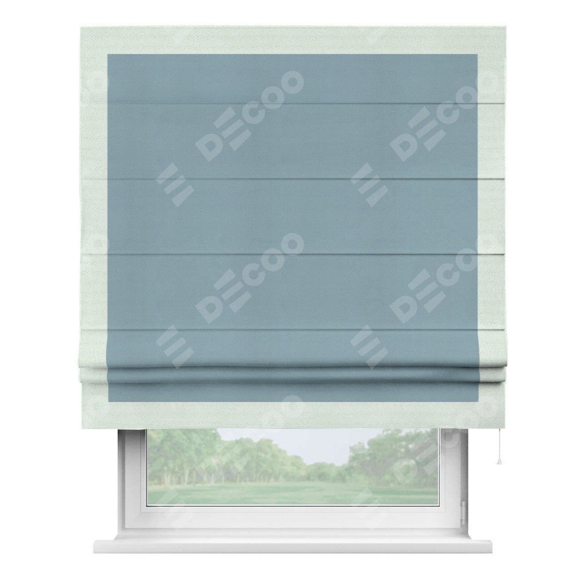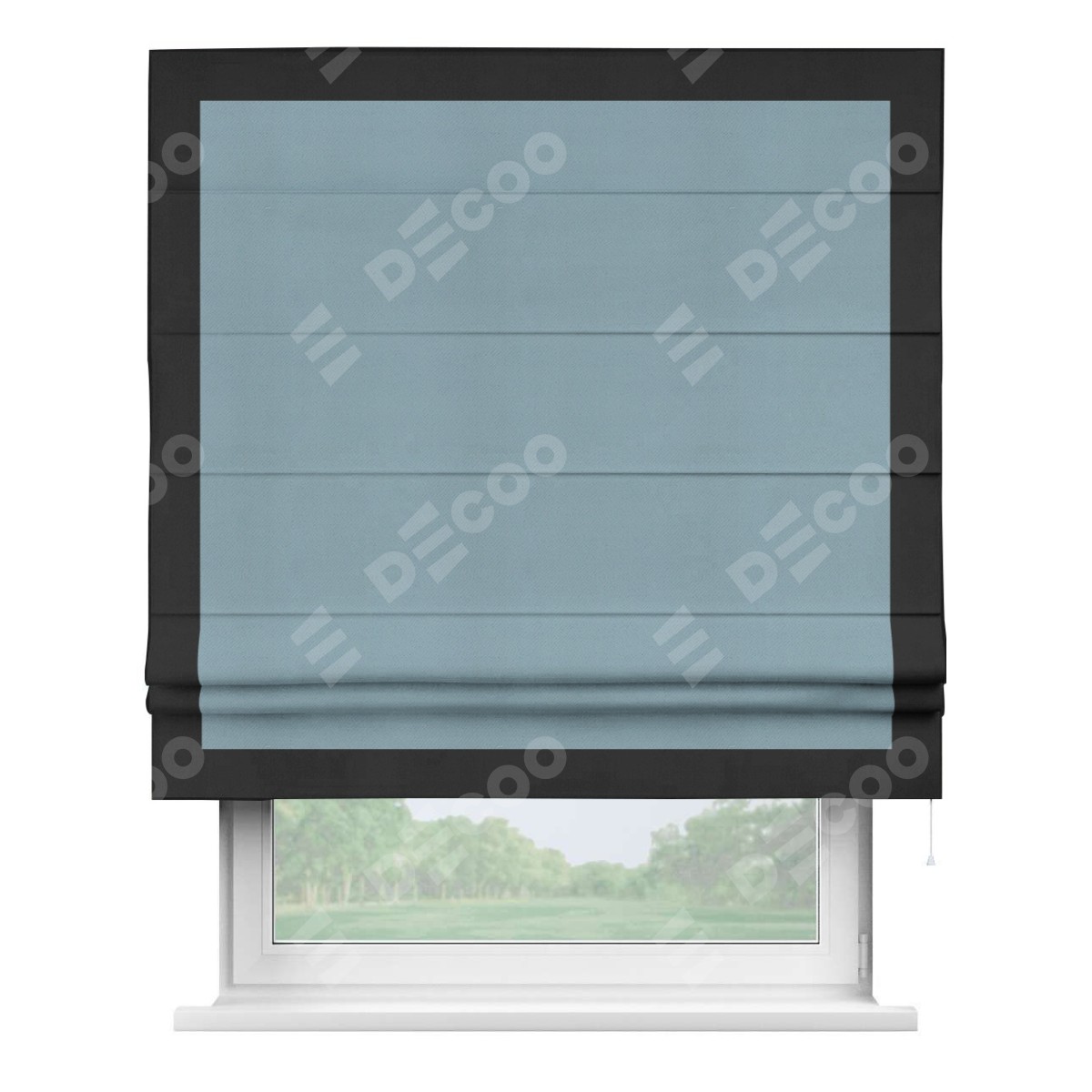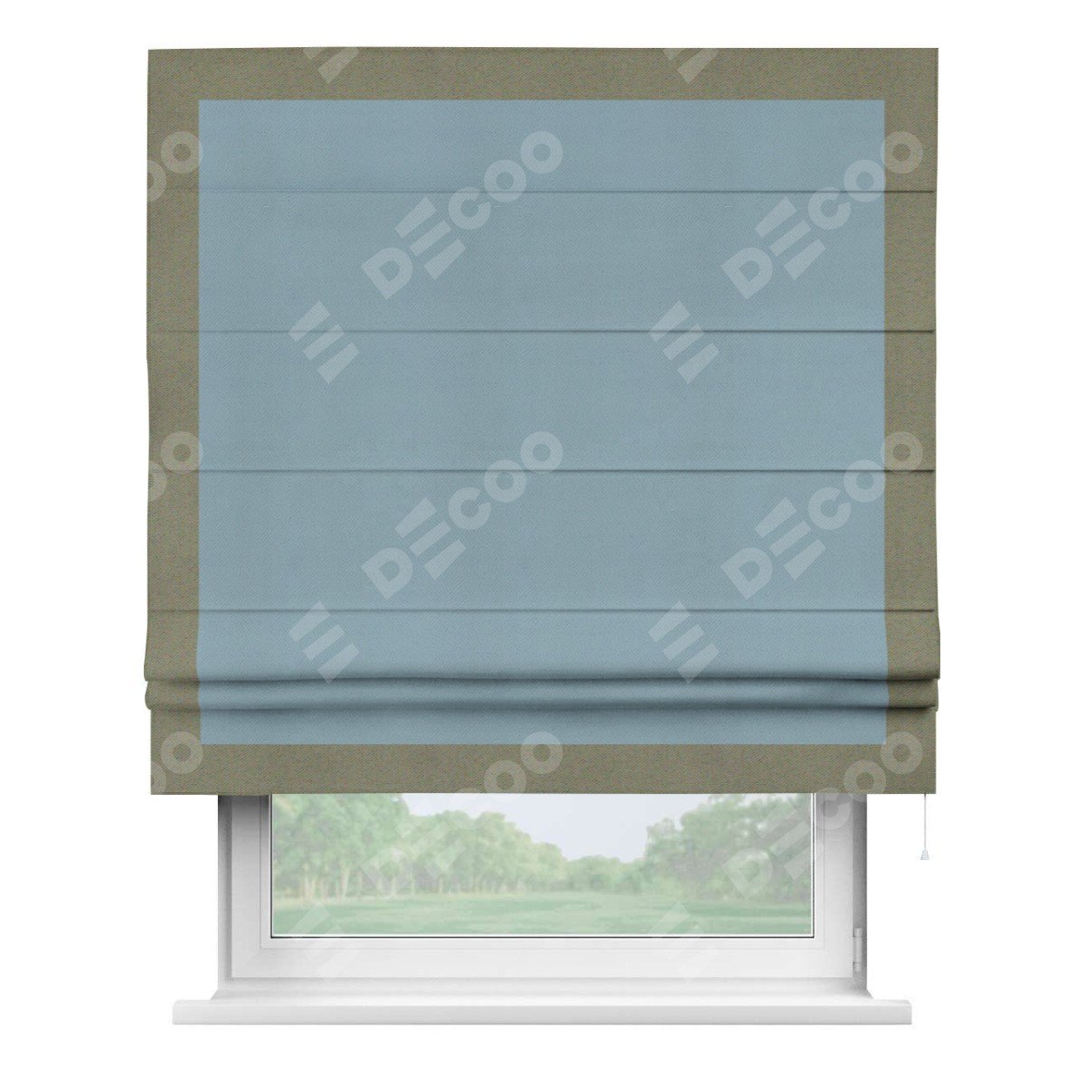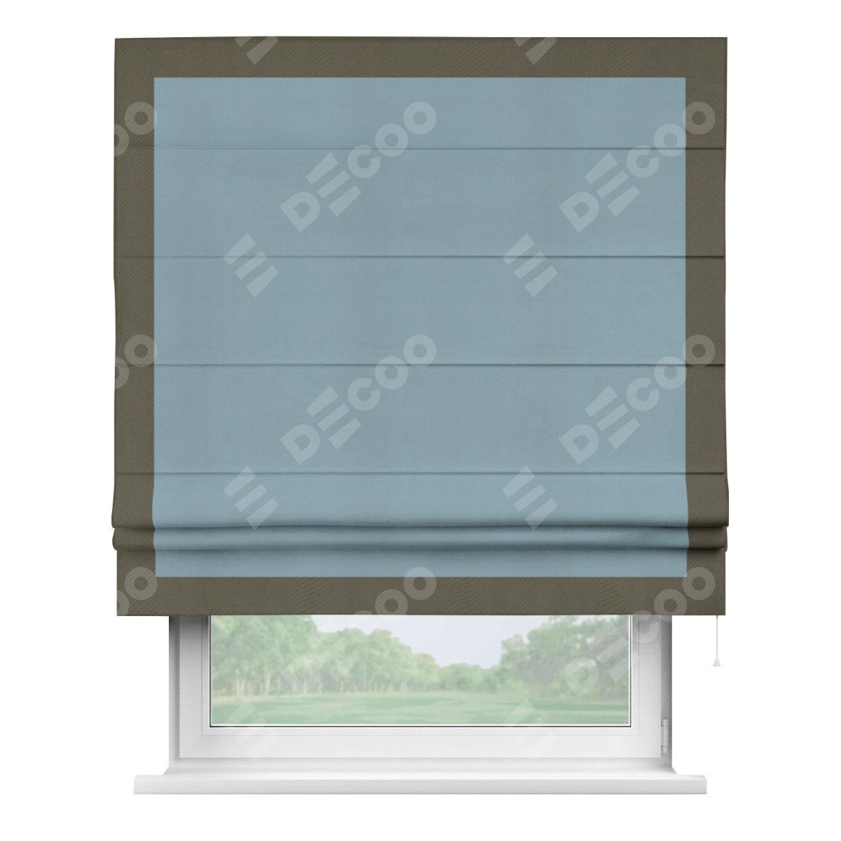 Римская штора «Кортин» с кантом Чесс, для проема, ткань блэкаут однотонный серо-голубой