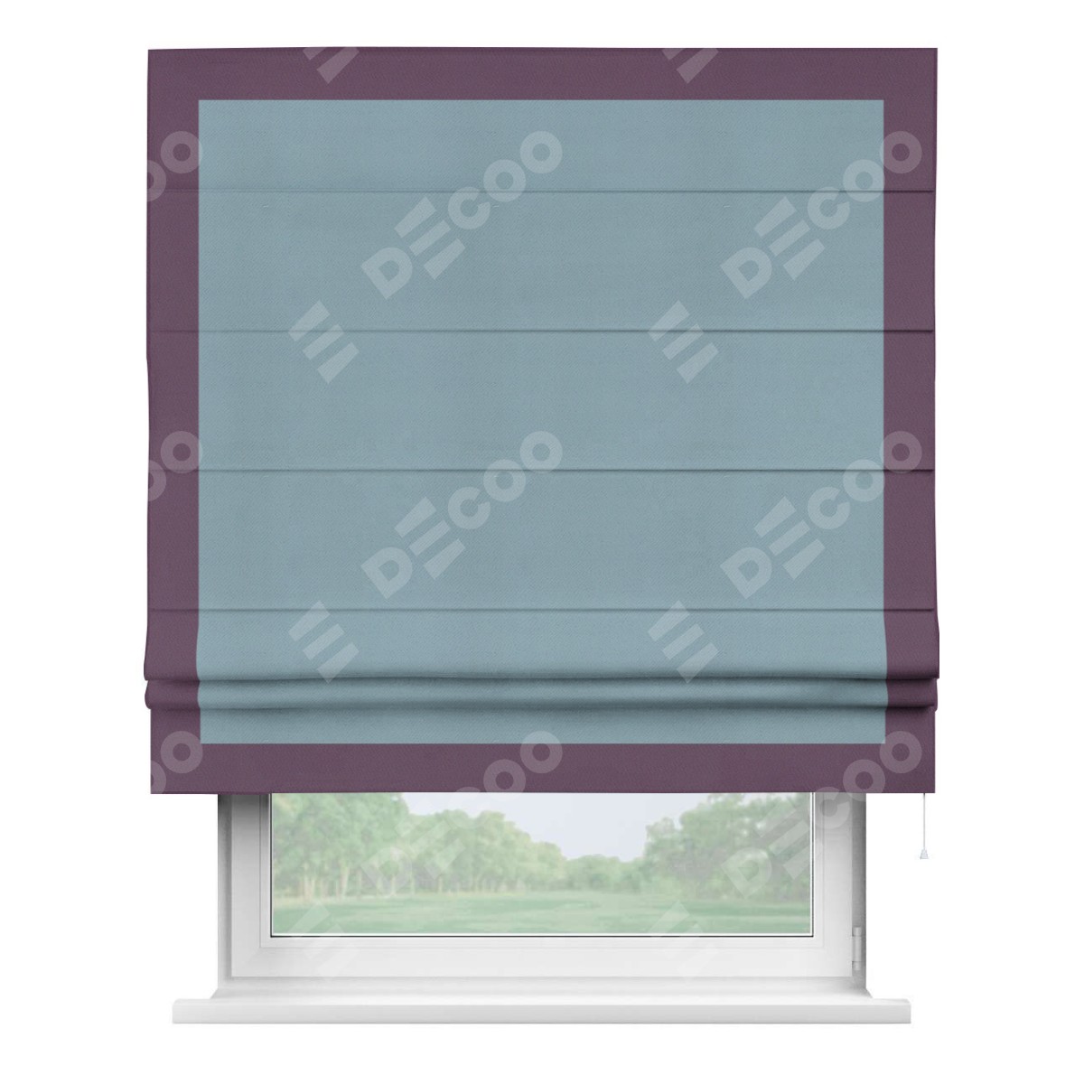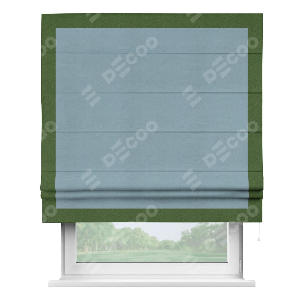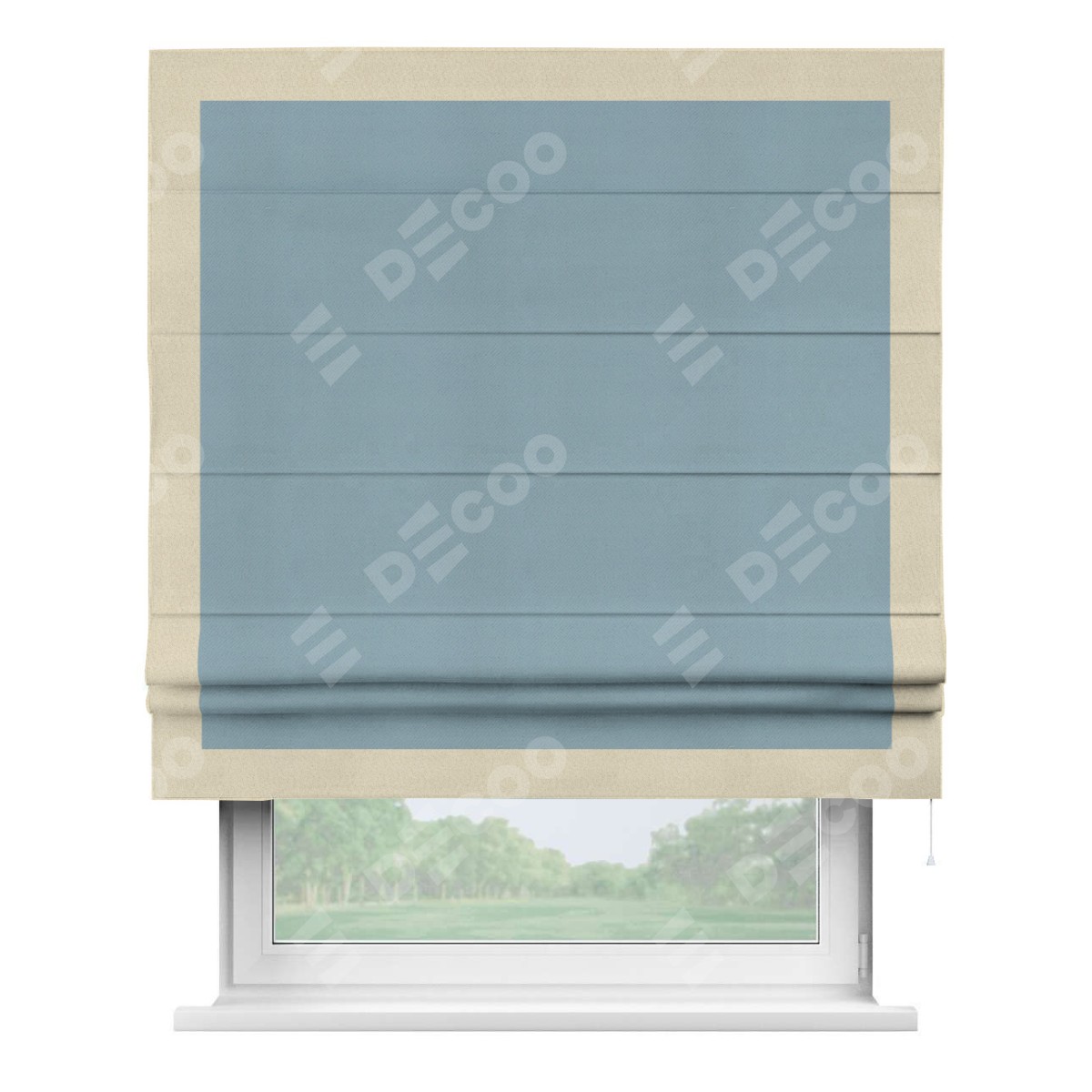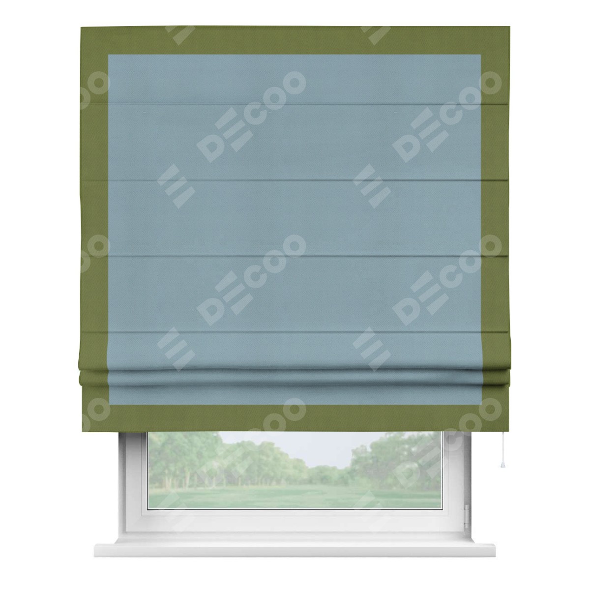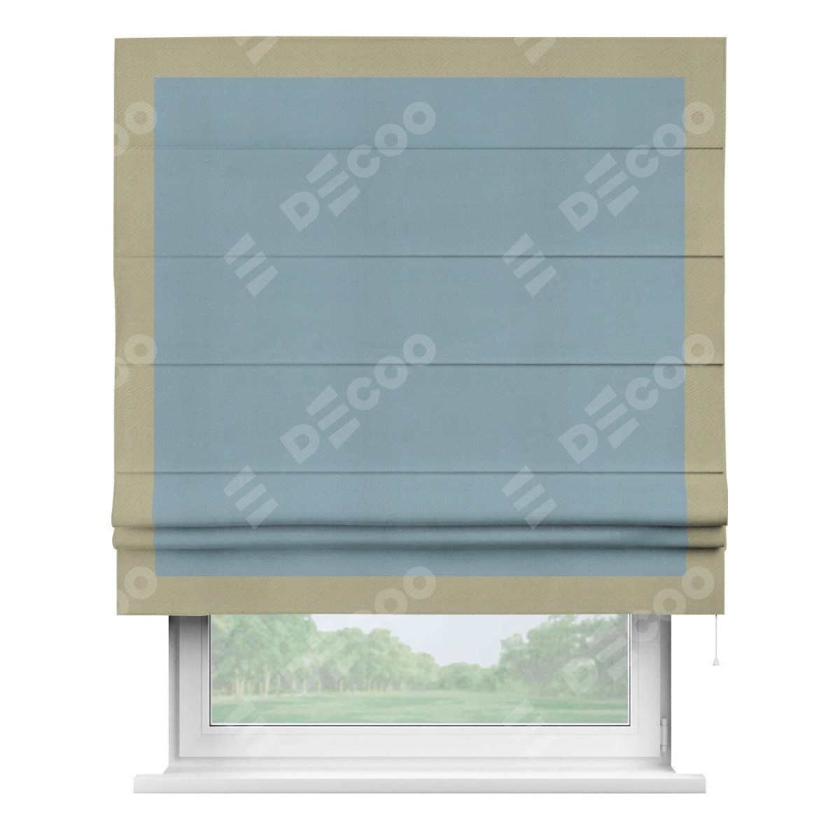 Римская штора «Кортин» с кантом Чесс, для проема, ткань блэкаут однотонный серо-голубой
