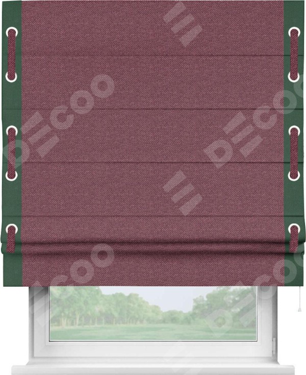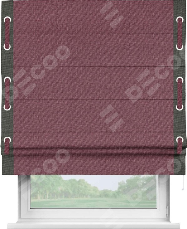Римская штора «Кортин» с кантом Стрим Дуо (люверсы с пояском), для проема, ткань лён димаут, марсала