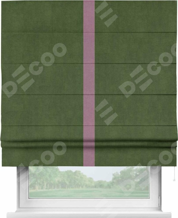 Римская штора «Кортин» с кантом Хайвэй, для проема, ткань вельвет тёмно-салатовый