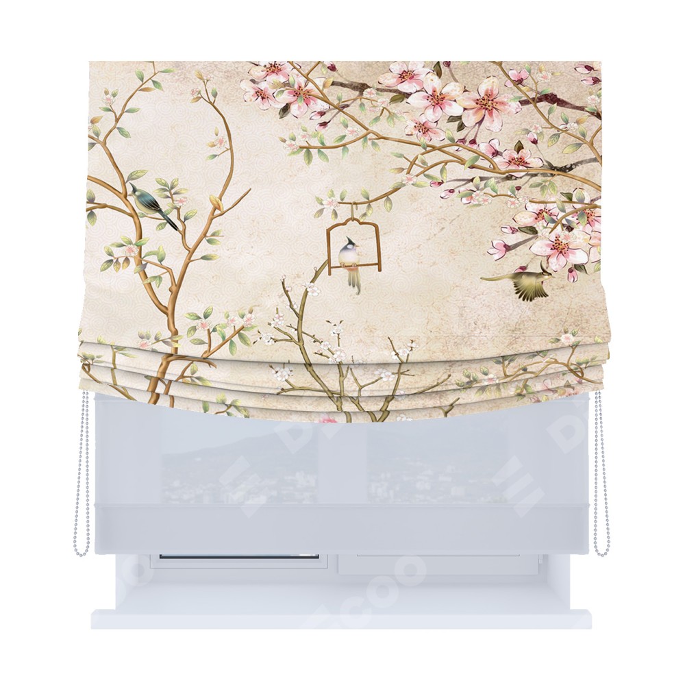 Римская штора «Кортин», день-ночь с мягкими складками, «Весенний сад»