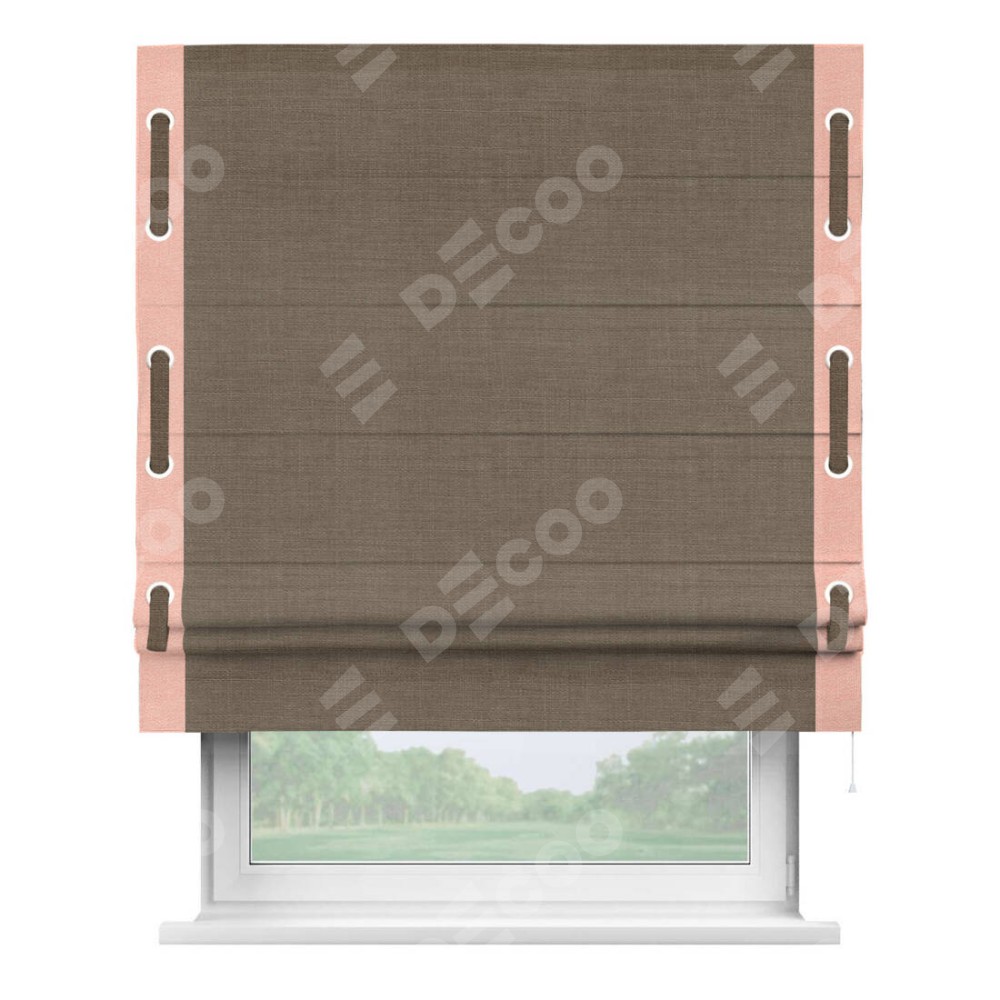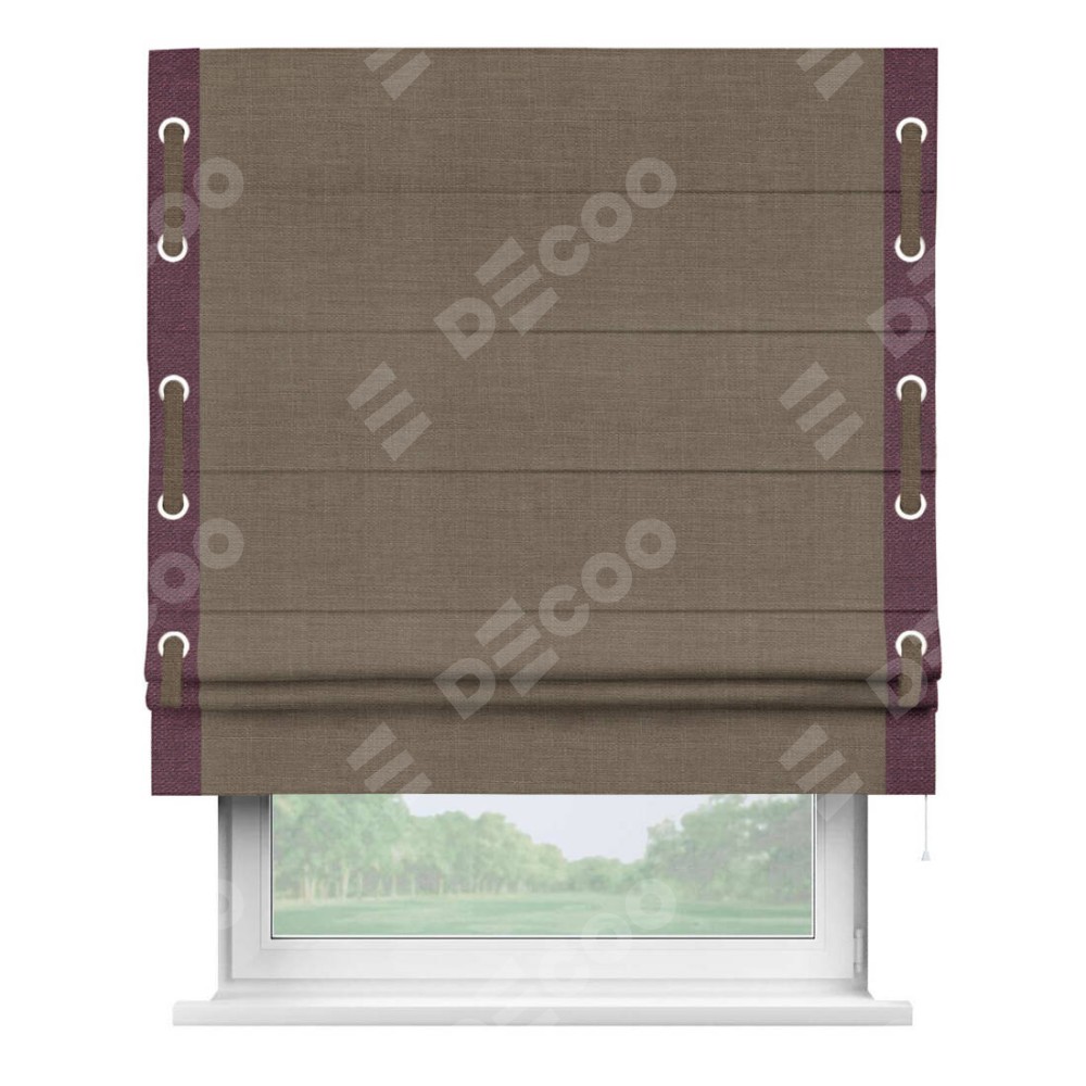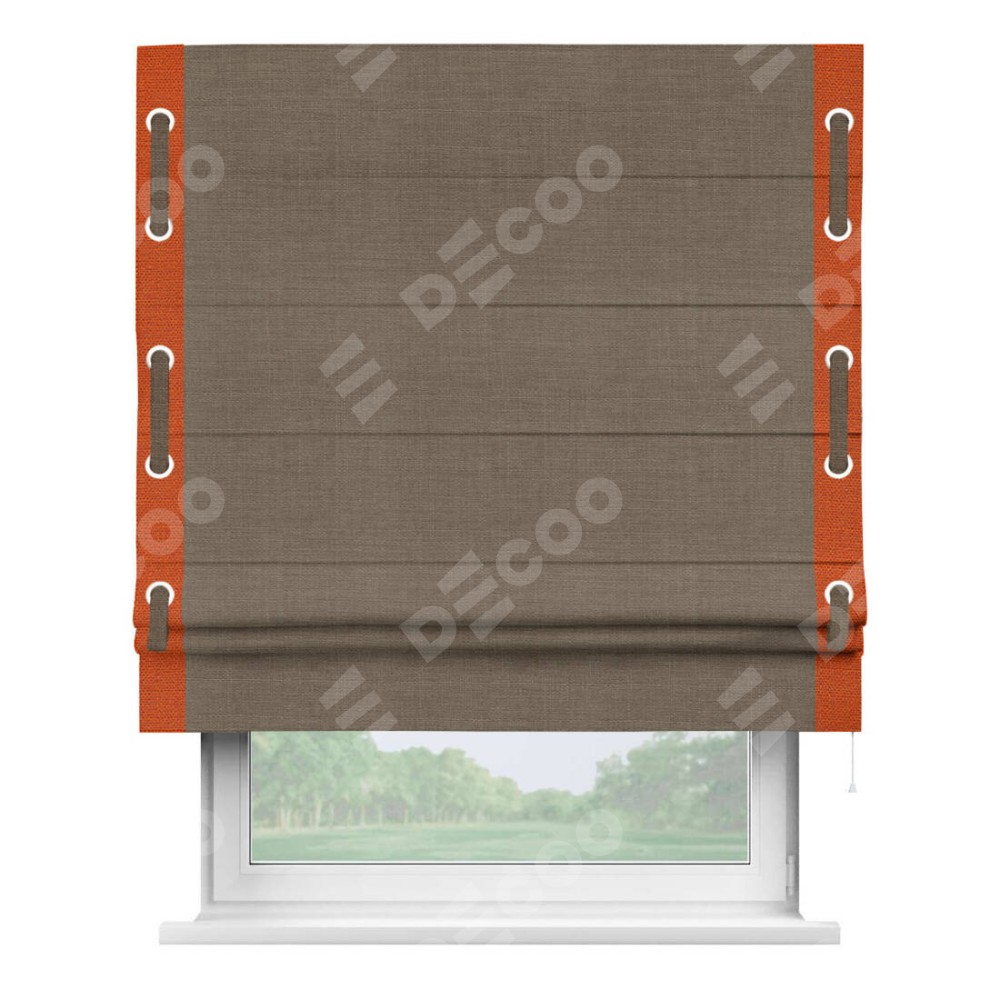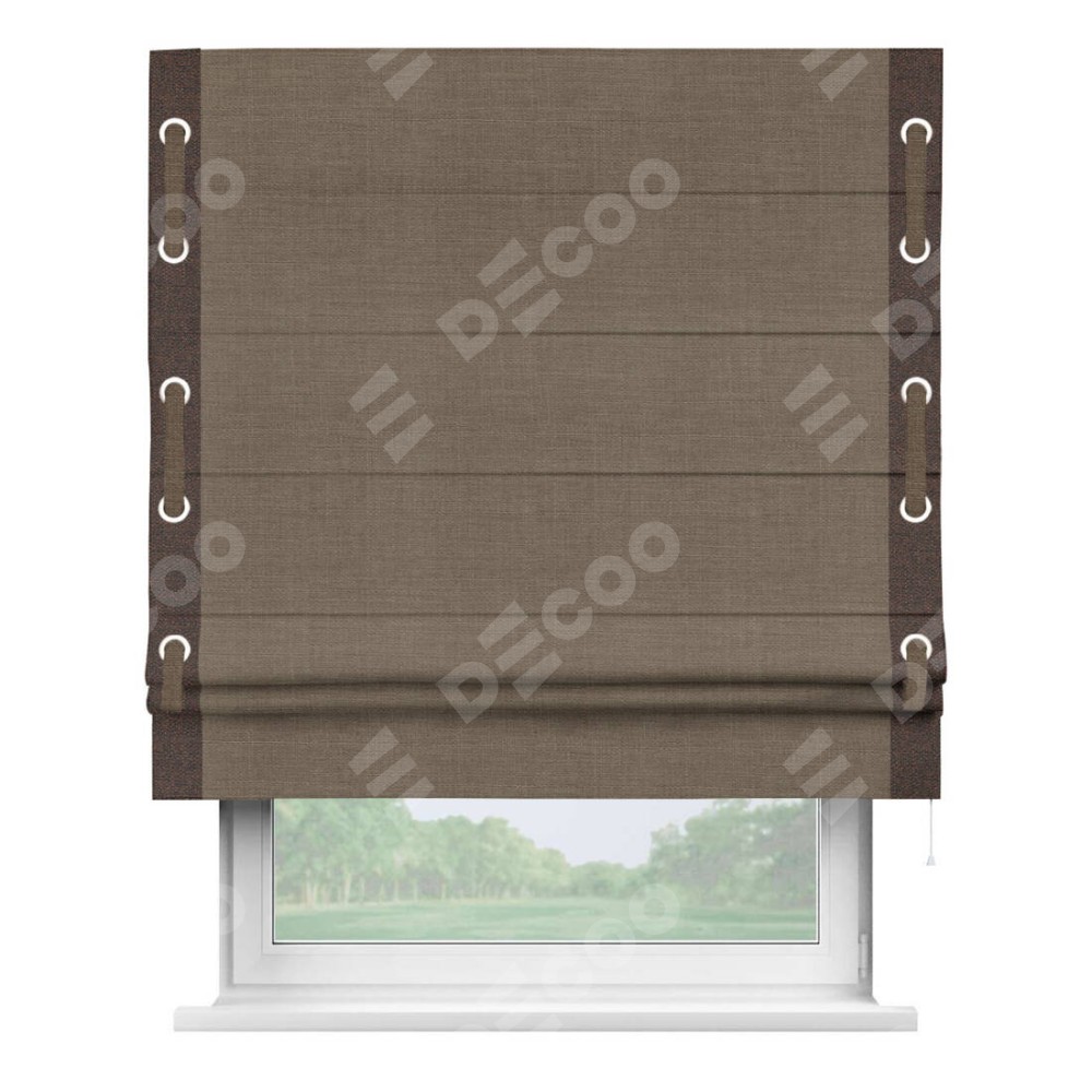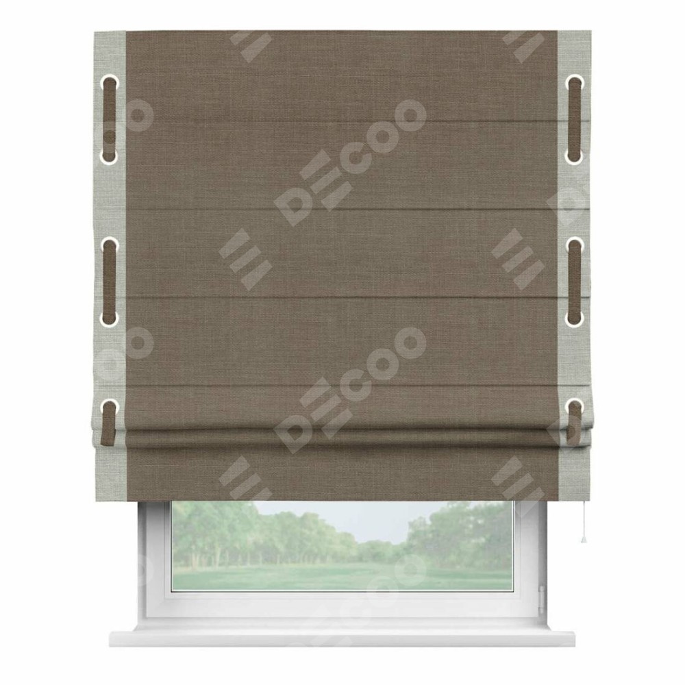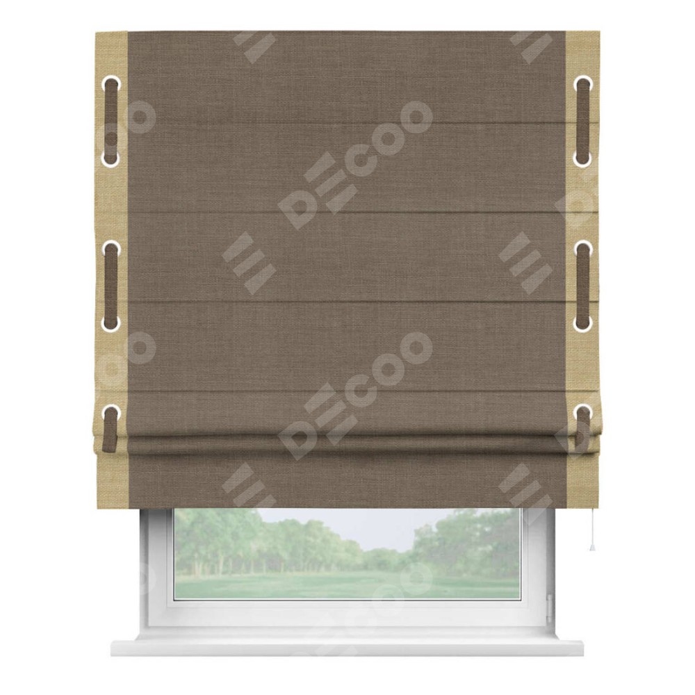 Римская штора «Кортин» с кантом Стрим Дуо (люверсы с пояском), для проема, ткань лён мокко