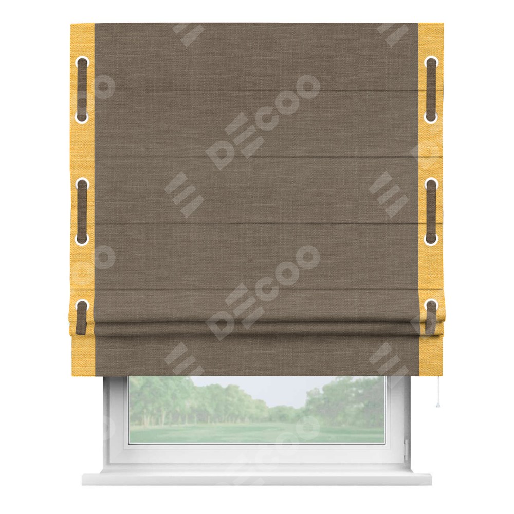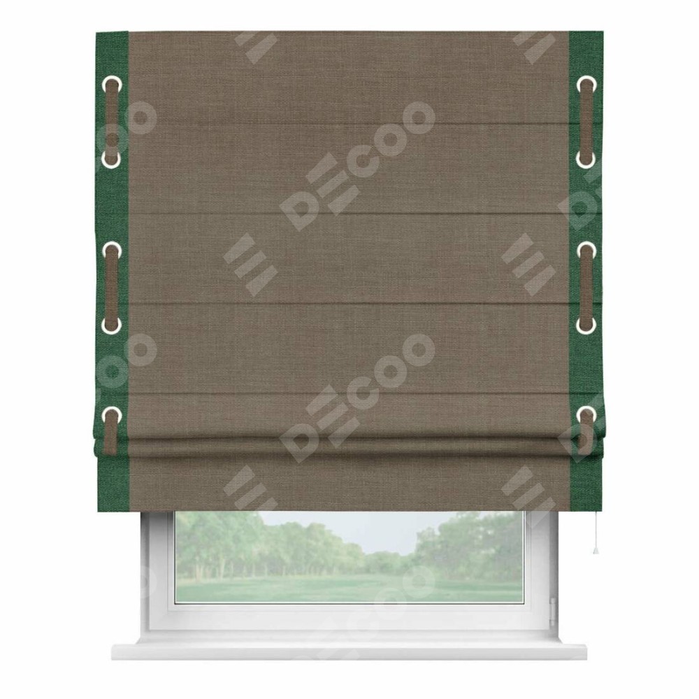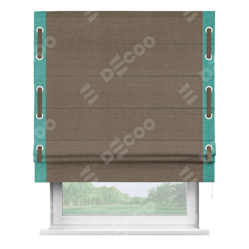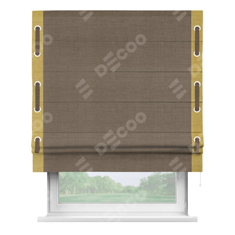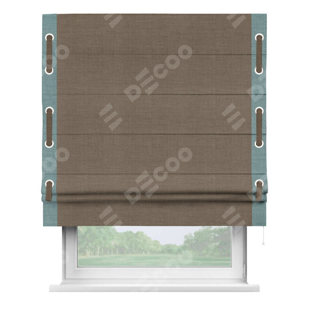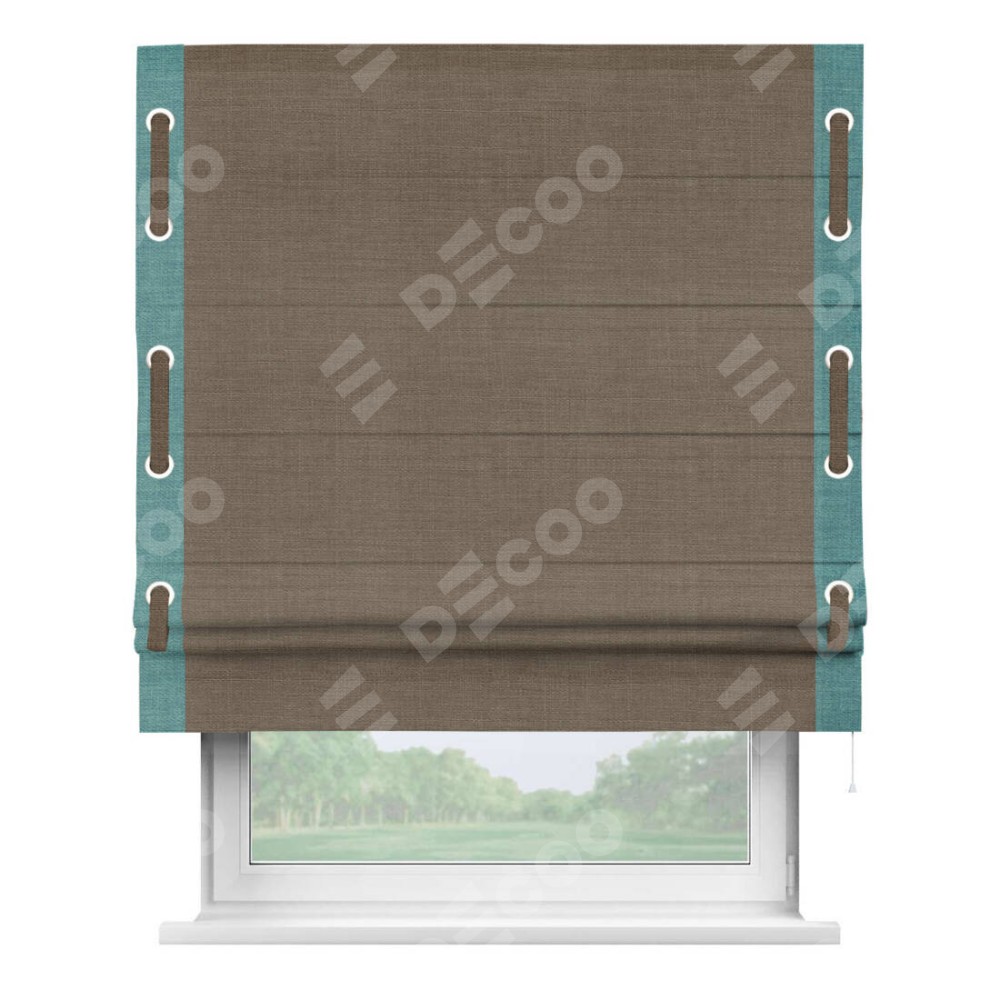 Римская штора «Кортин» с кантом Стрим Дуо (люверсы с пояском), для проема, ткань лён мокко