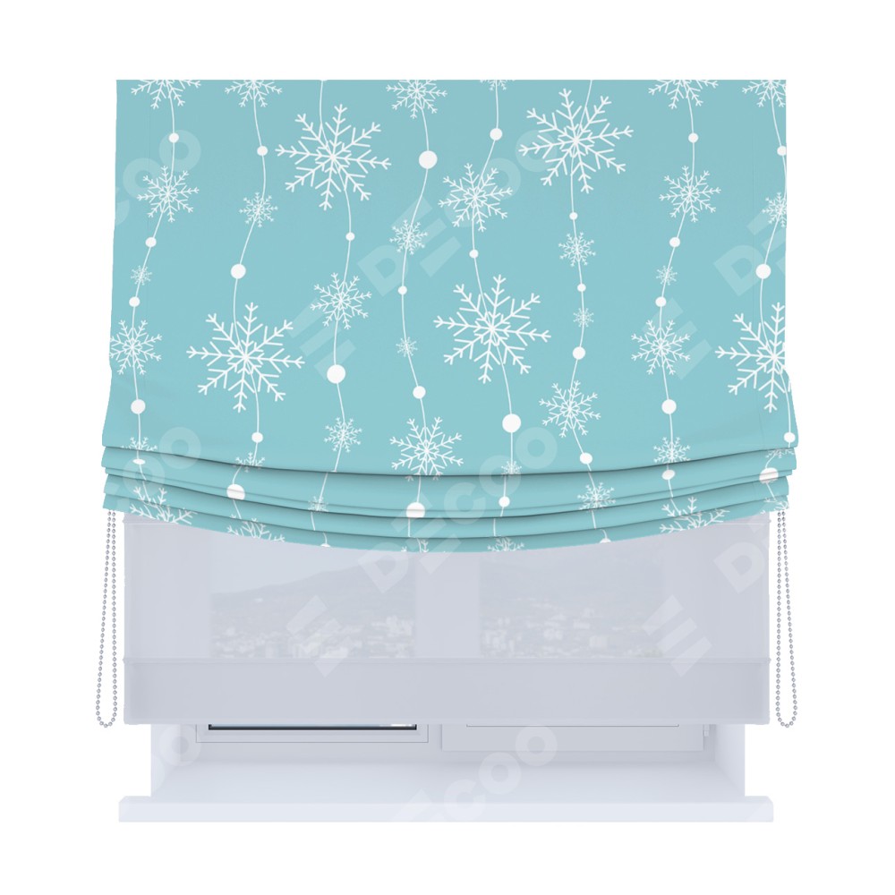 Римская штора «Кортин», день-ночь с мягкими складками, «Гирлянда из снежинок»