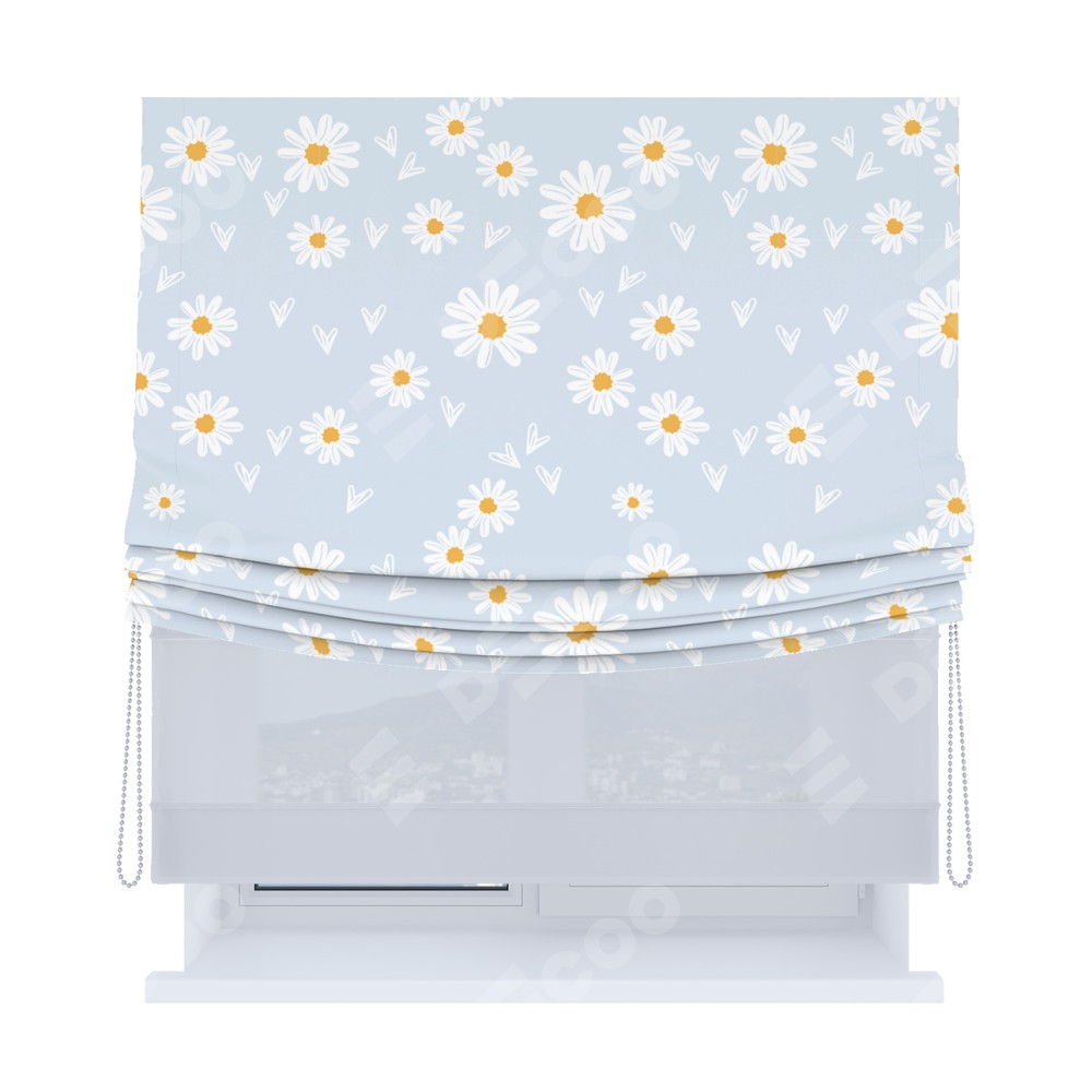 Римская штора «Кортин», день-ночь с мягкими складками, «Летние ромашки»