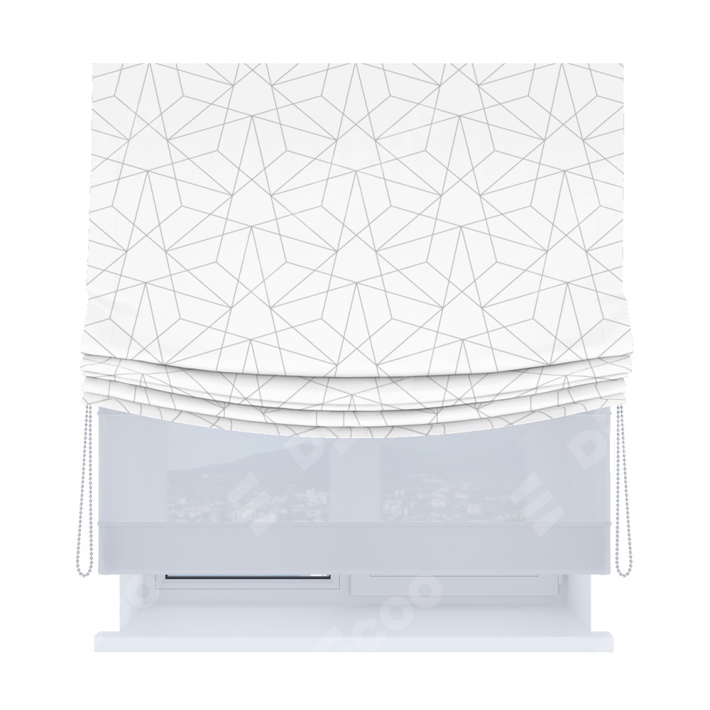 Римская штора день-ночь производителя «Cortin», используется для проёма, пошита из двух полотен, с лицевой блэкаут с нанесением сублимационной печати «Простая геометрия», вторая ткань тюль (по стандарту комплектуется тюль белого цвета артикул V-01). Имеет универсальный механизм и подходит для монтажа: на потолок, на стену и в нишу. Удобное управление каждой шторой отдельно.