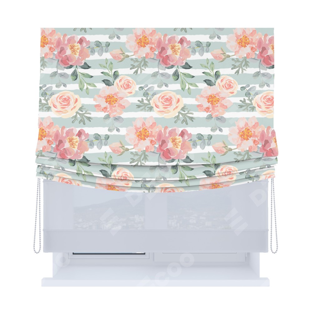 Римская штора «Кортин», день-ночь с мягкими складками, «Розы акварель»