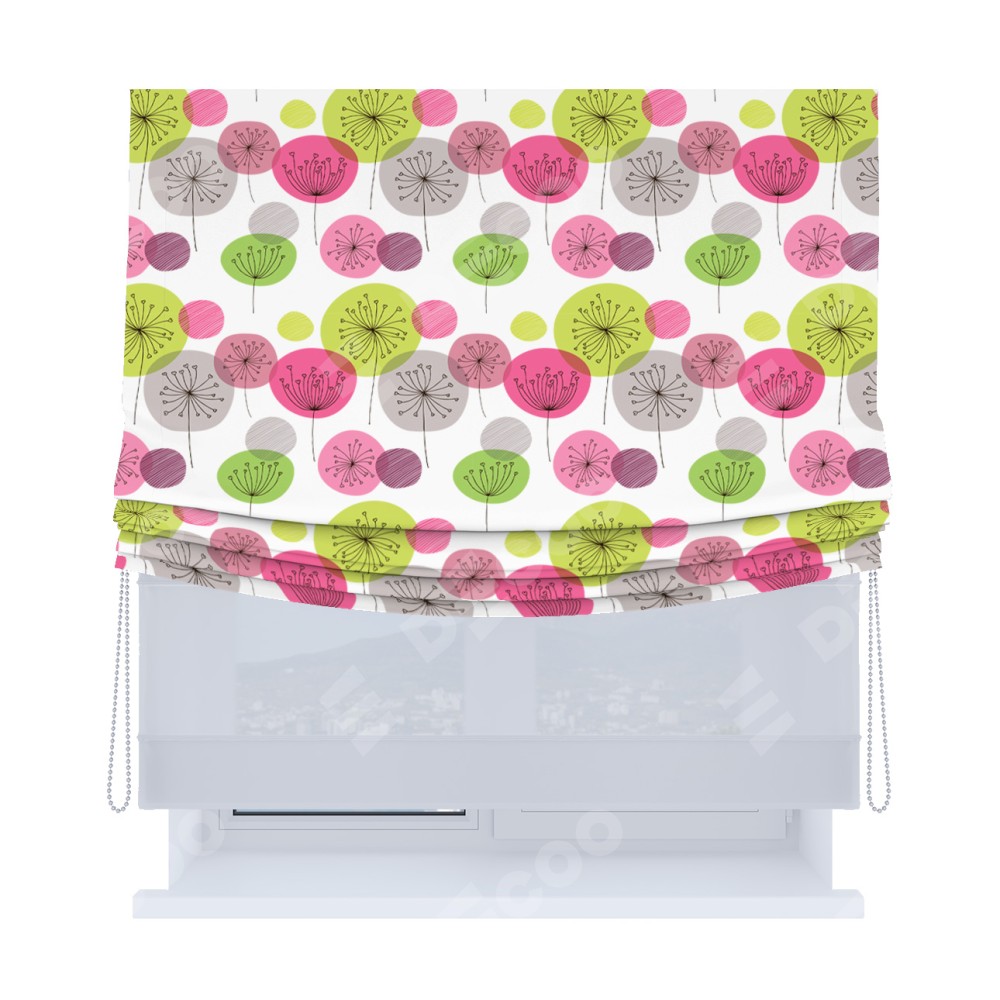 Римская штора «Кортин», день-ночь с мягкими складками, «Цветные одуванчики»