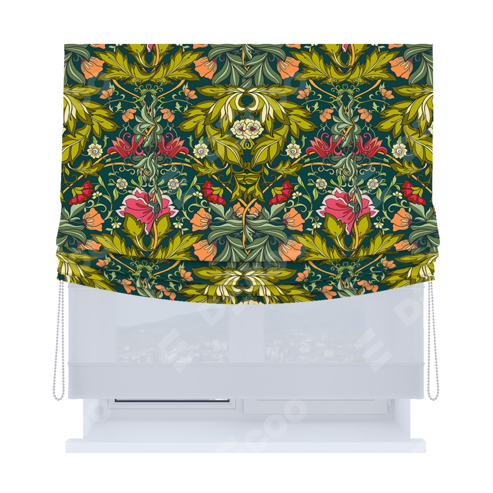Римская штора «Кортин», день-ночь с мягкими складками, «Цветок морриса»