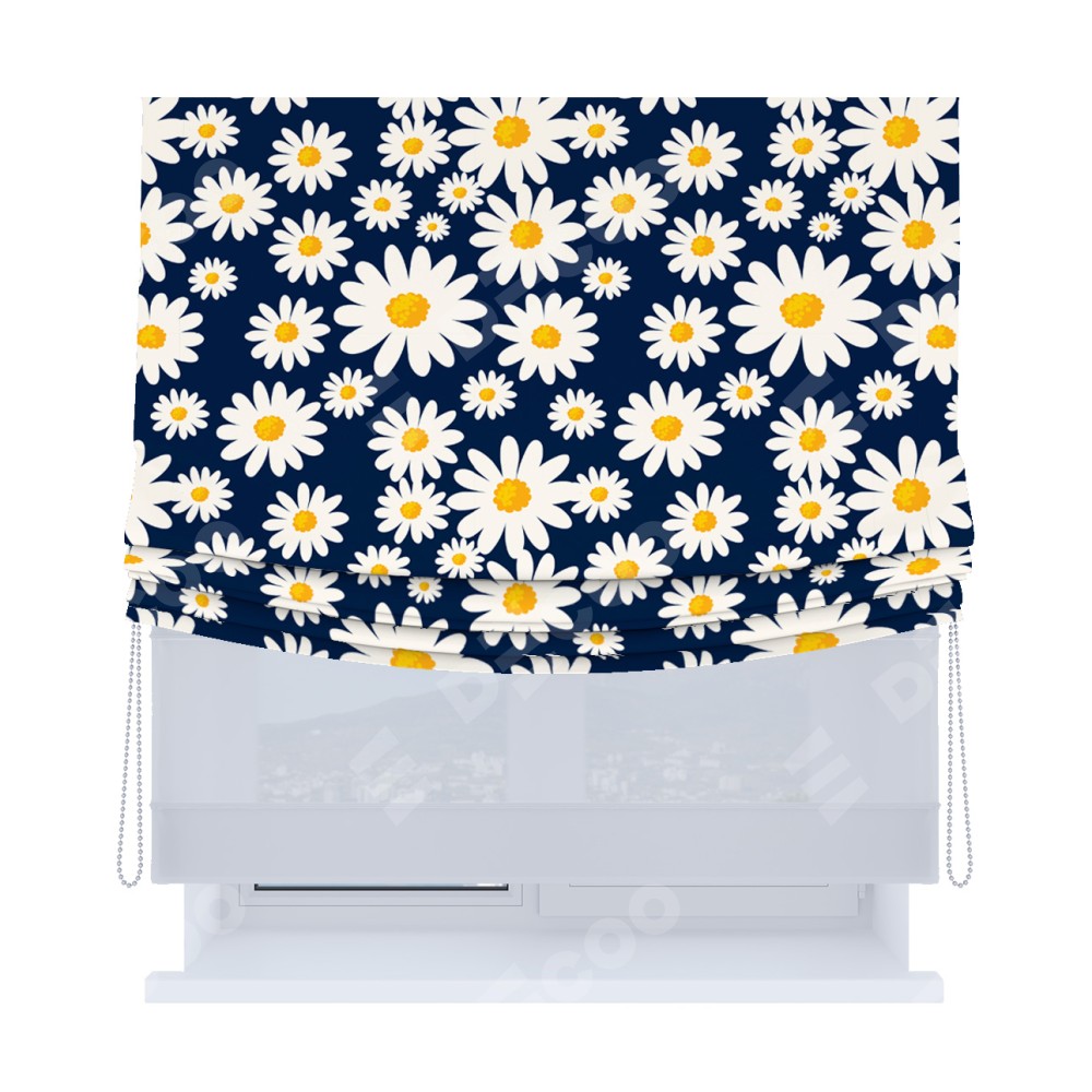 Римская штора «Кортин», день-ночь с мягкими складками, «Яркие ромашки»