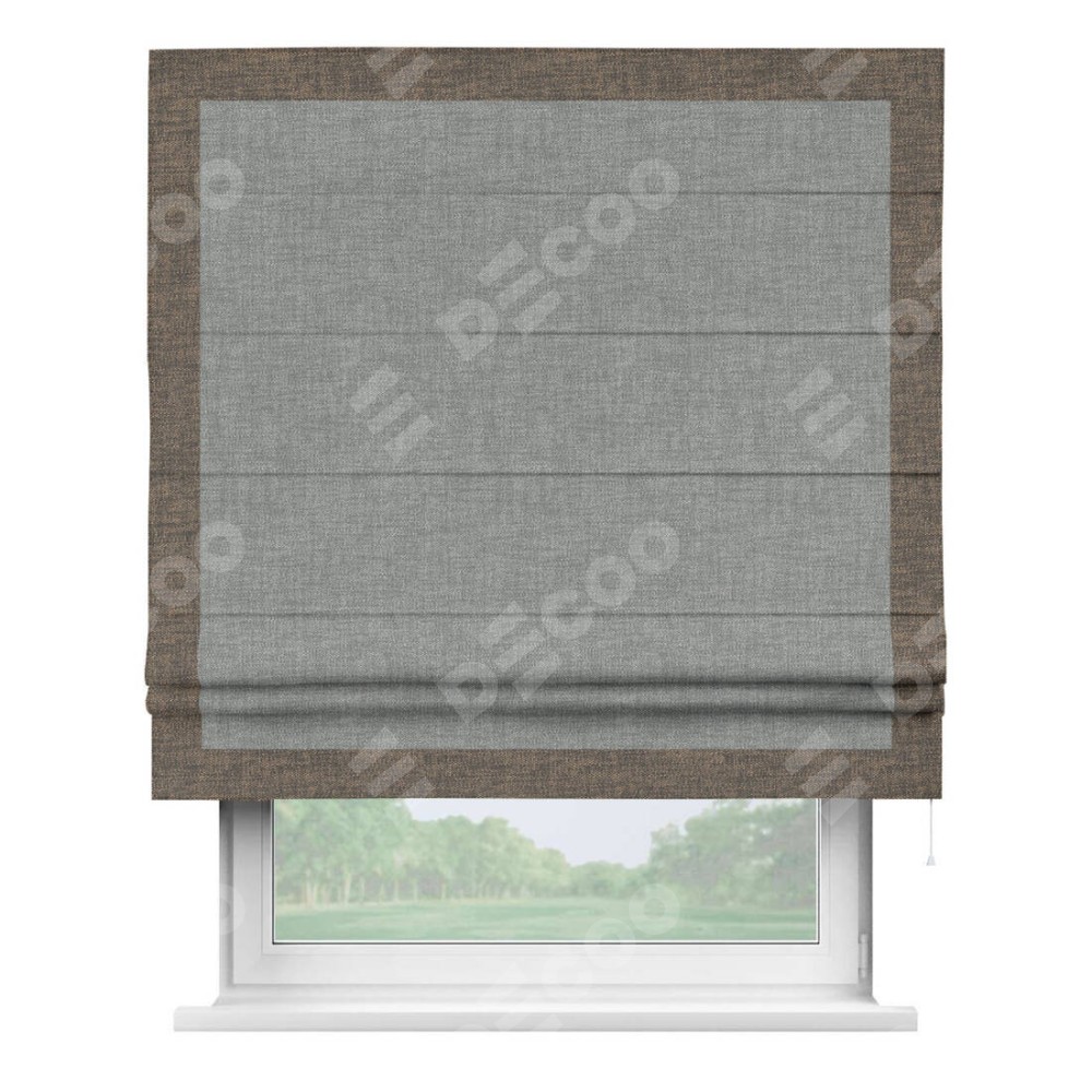 Римская штора «Кортин» с кантом Чесс, для проема, ткань рогожка димаут, тёмно-серый