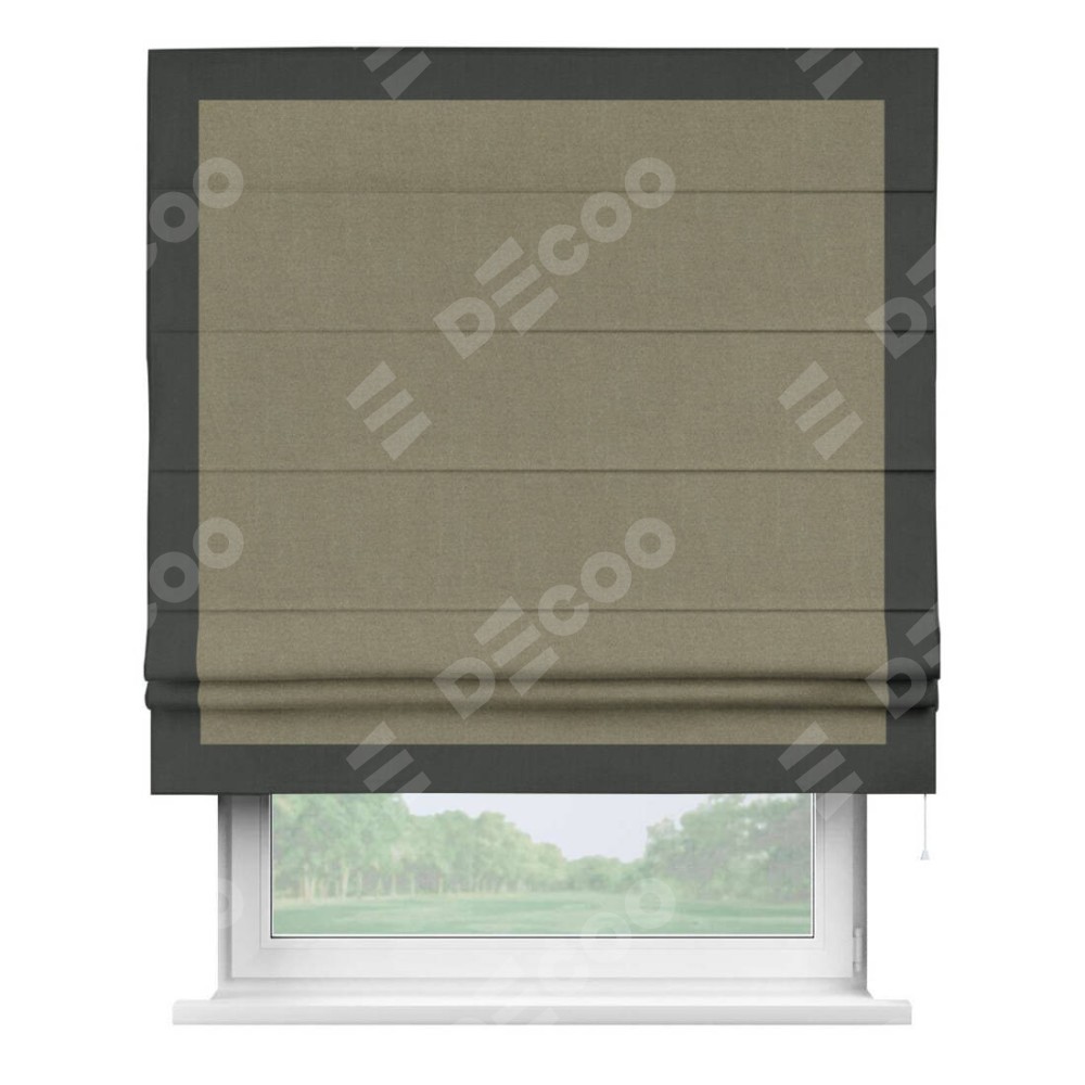 Римская штора производителя «Cortin», используется для проёма, пошита из ткани лён блэкаут бежевый, артикул 69435. Отделка шторы кантом «Чесс», ткань для канта используется из льна разной расцветки на выбор. Имеет универсальный механизм и подходит для монтажа: на потолок, на стену и в нишу.