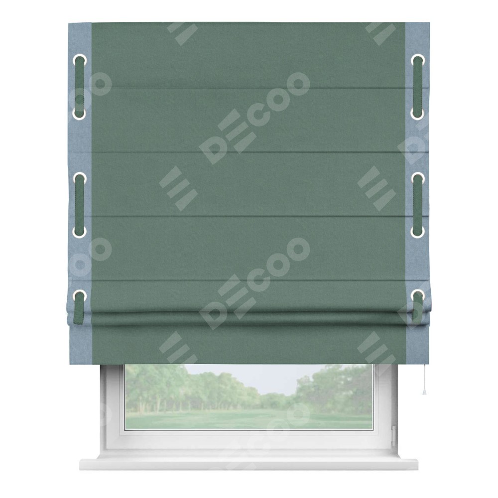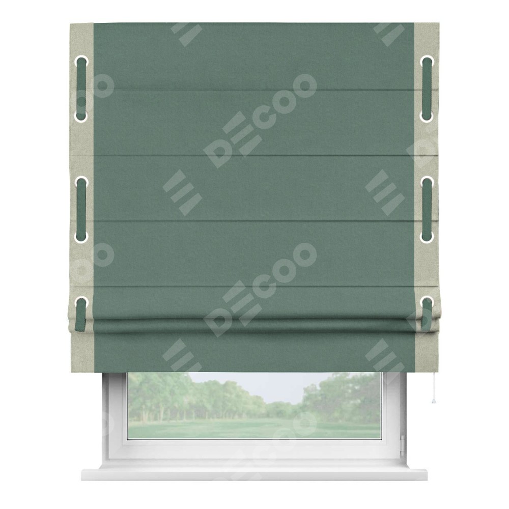 Римская штора «Кортин» с кантом Стрим Дуо (люверсы с пояском), для проема, лён блэкаут бирюзовый