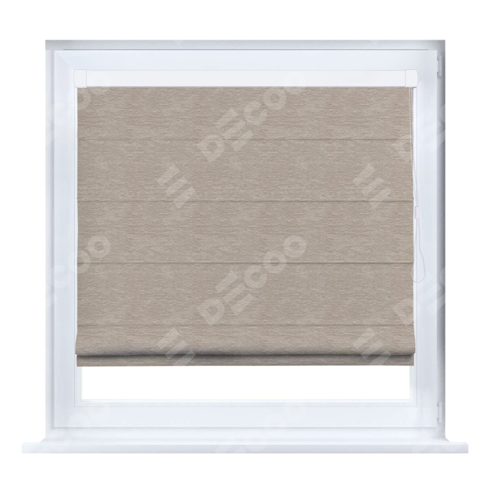 Римская штора кассетного типа, производителя «Cortin», устанавливается только на пластиковые окна и прилегает к стеклопакету, пошита из ткани софт однотонный тёмно-бежевый, артикул 1640.