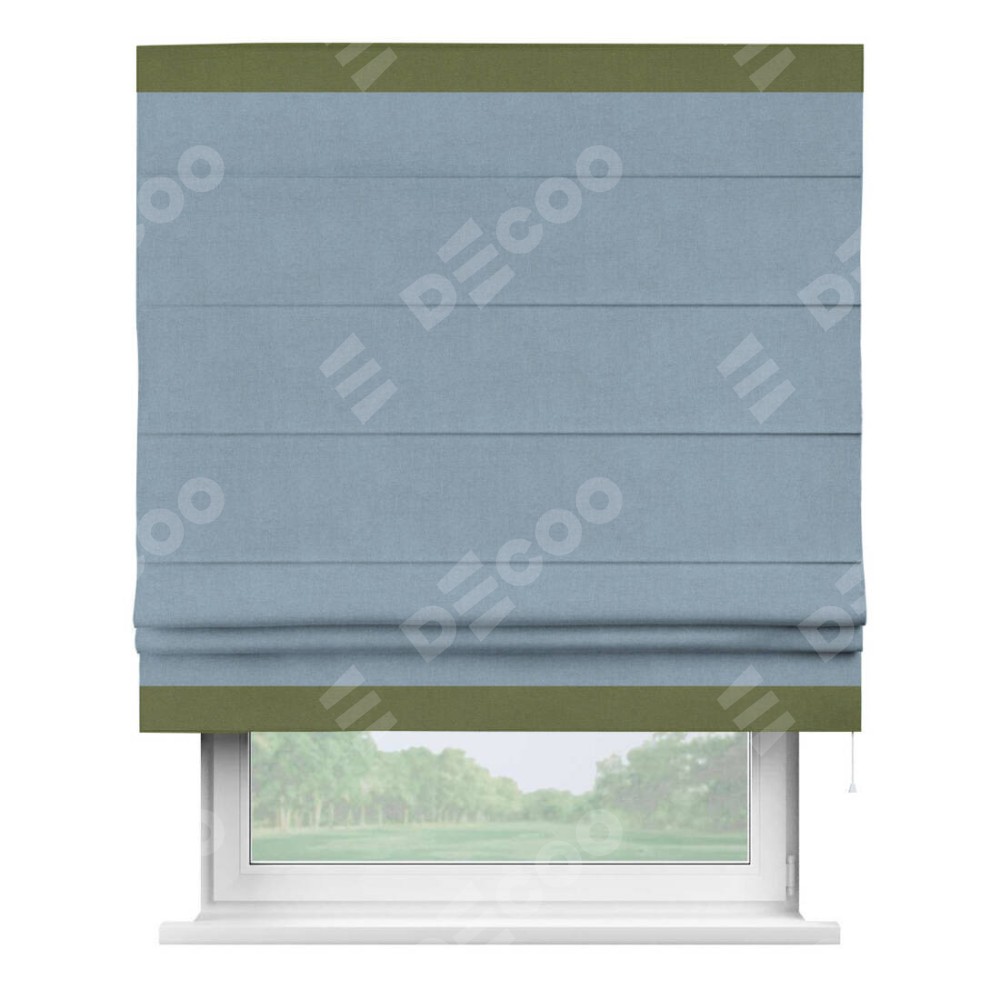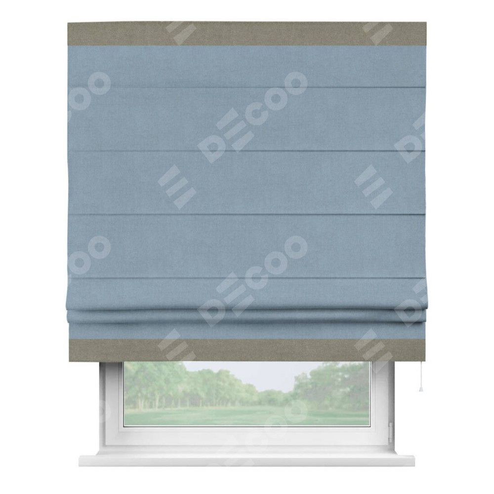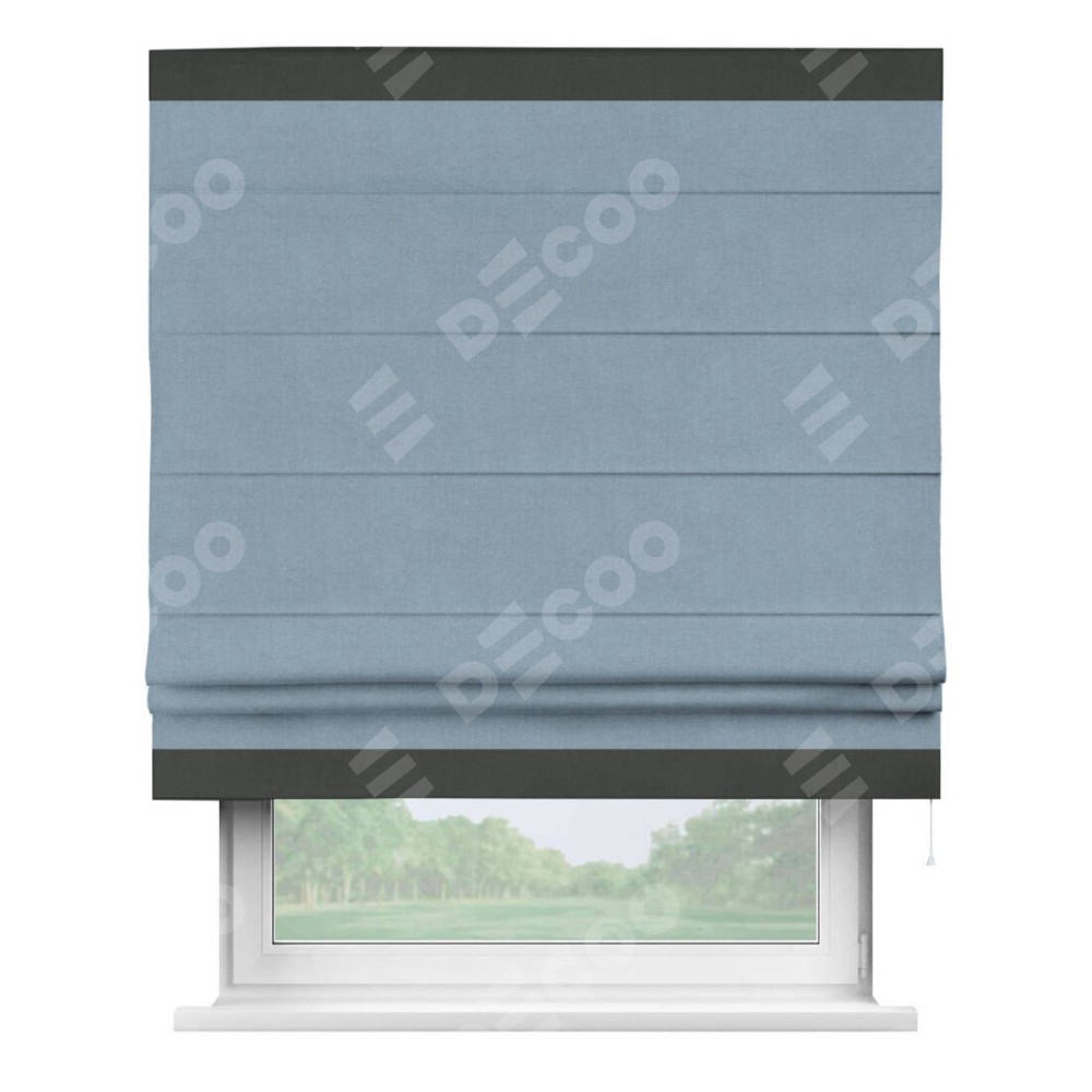 Римская штора «Кортин» с кантом Горизонт, для проема, лён блэкаут голубой