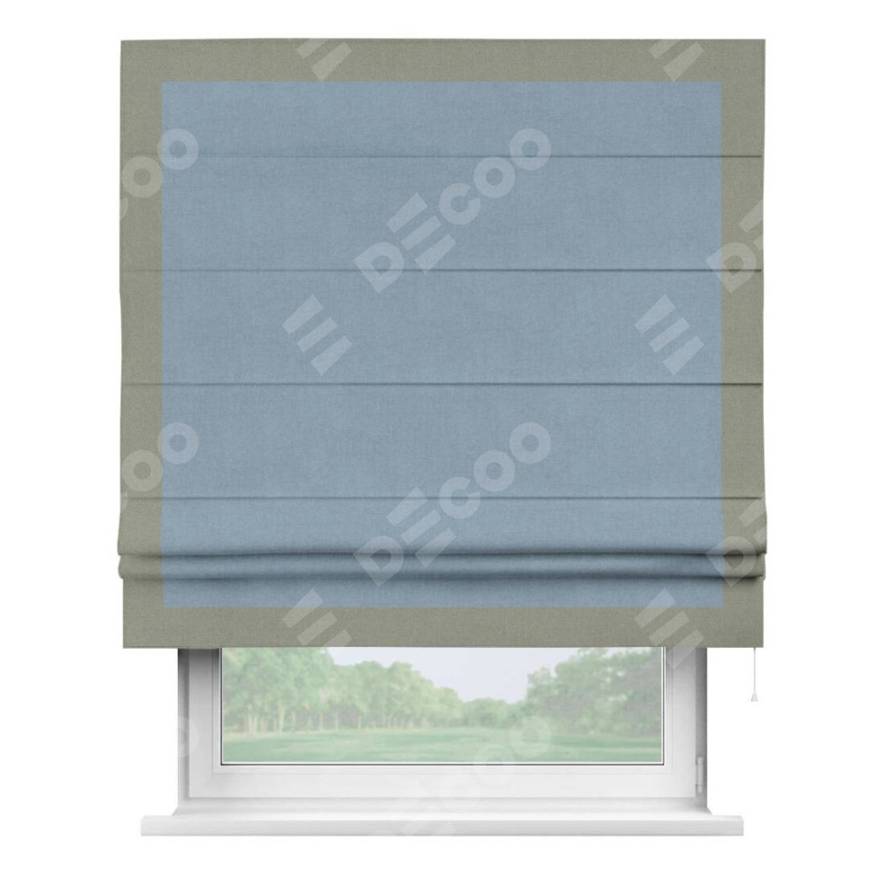 Римская штора «Кортин» с кантом Чесс, для проема, лён блэкаут голубой