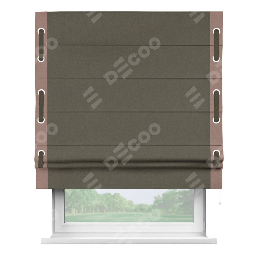 Римская штора «Кортин» с кантом Стрим Дуо (люверсы с пояском), для проема, лён блэкаут коричневый