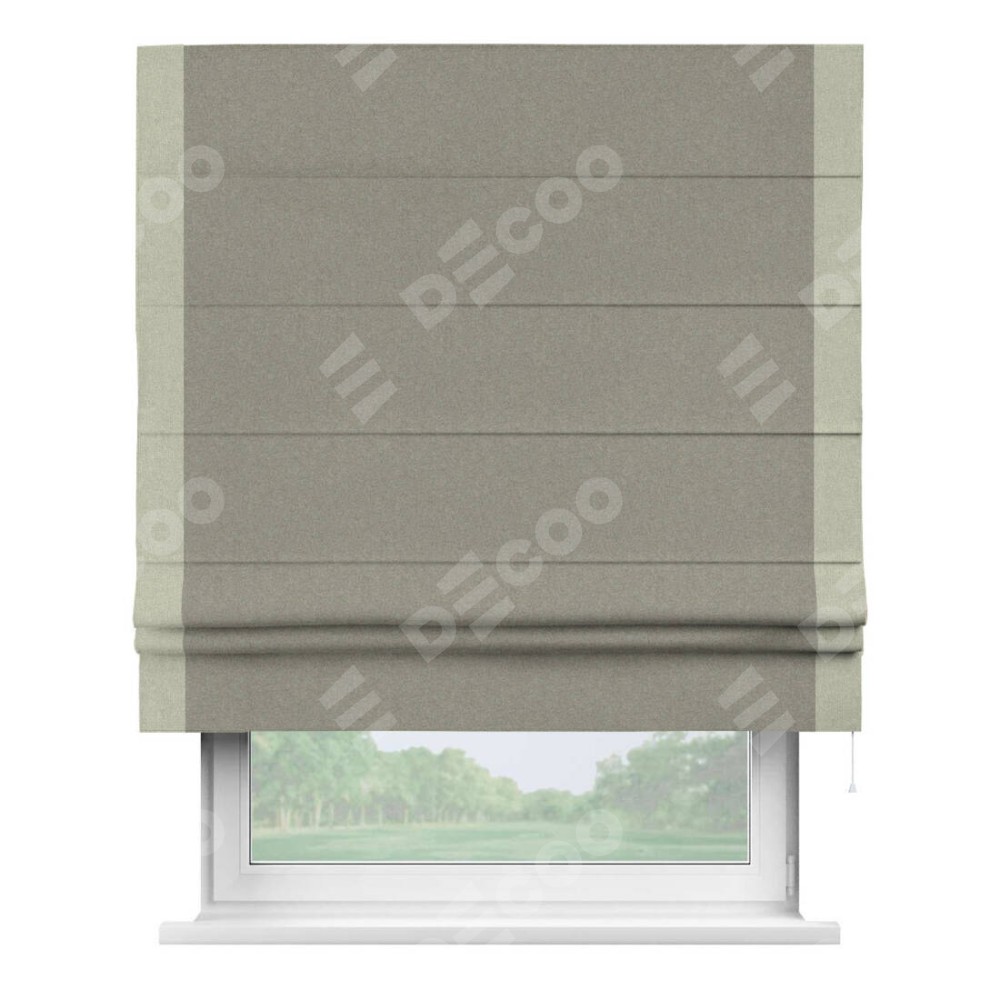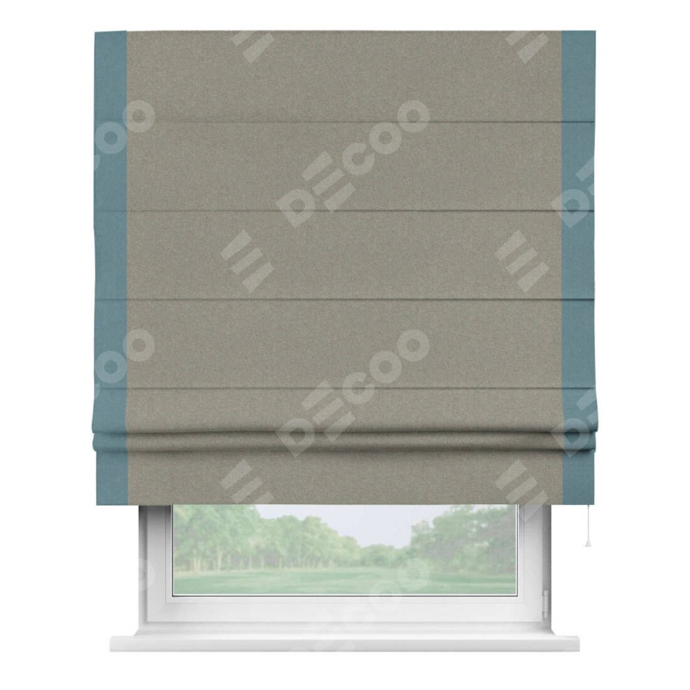 Римская штора производителя «Cortin», используется для проёма, пошита из ткани лён блэкаут светло-бежевый, артикул 69445. Отделка шторы кантом «Стрим Дуо», ткань для канта используется из льна разной расцветки на выбор. Имеет универсальный механизм и подходит для монтажа: на потолок, на стену и в нишу.