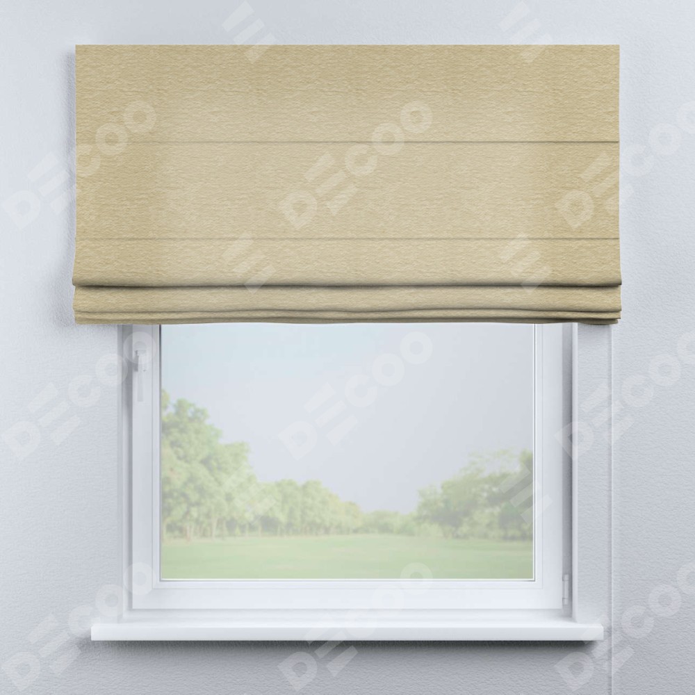 Римская штора производителя «Cortin», используется для проёма, пошита из ткани софт однотонный светло-бежевый, артикул ткани 54426. Имеет универсальный механизм и подходит для монтажа: на потолок, на стену и в нишу.