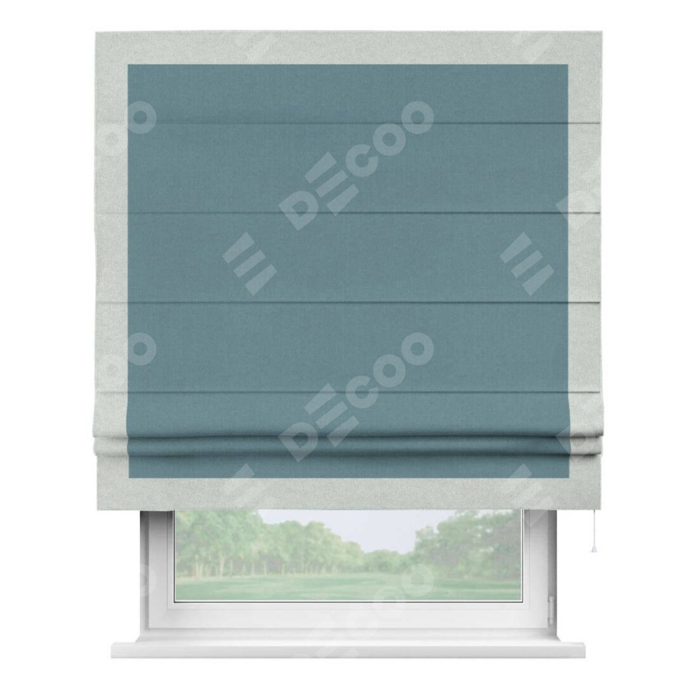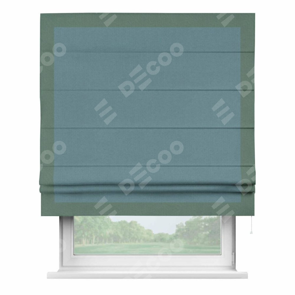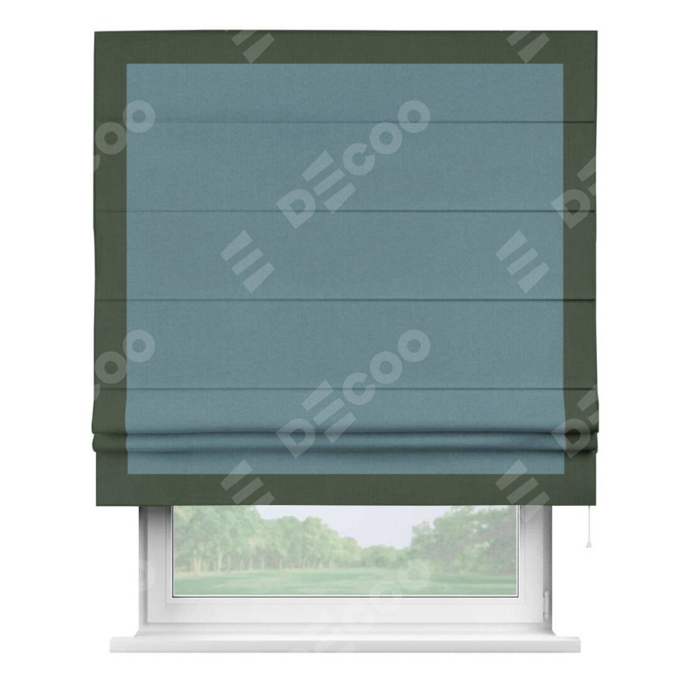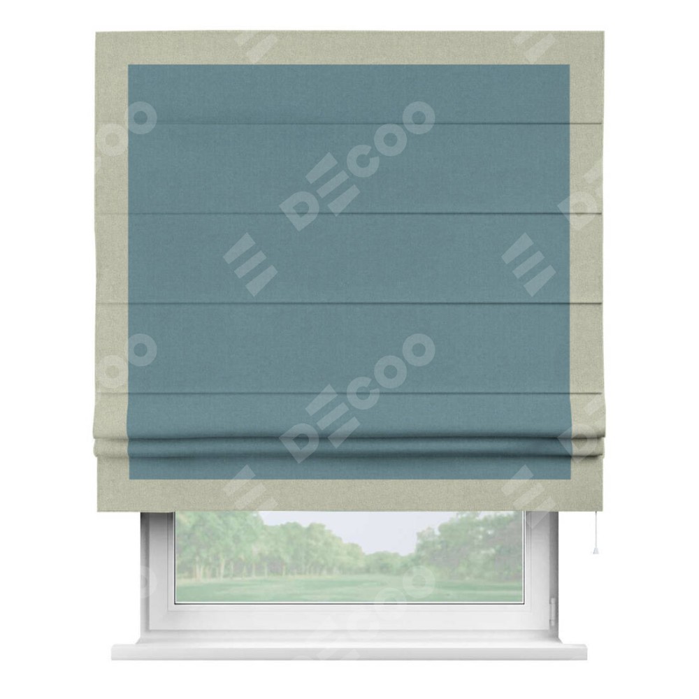 Римская штора «Кортин» с кантом Чесс, для проема, лён блэкаут синий