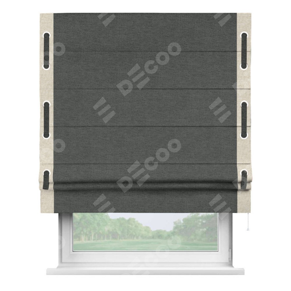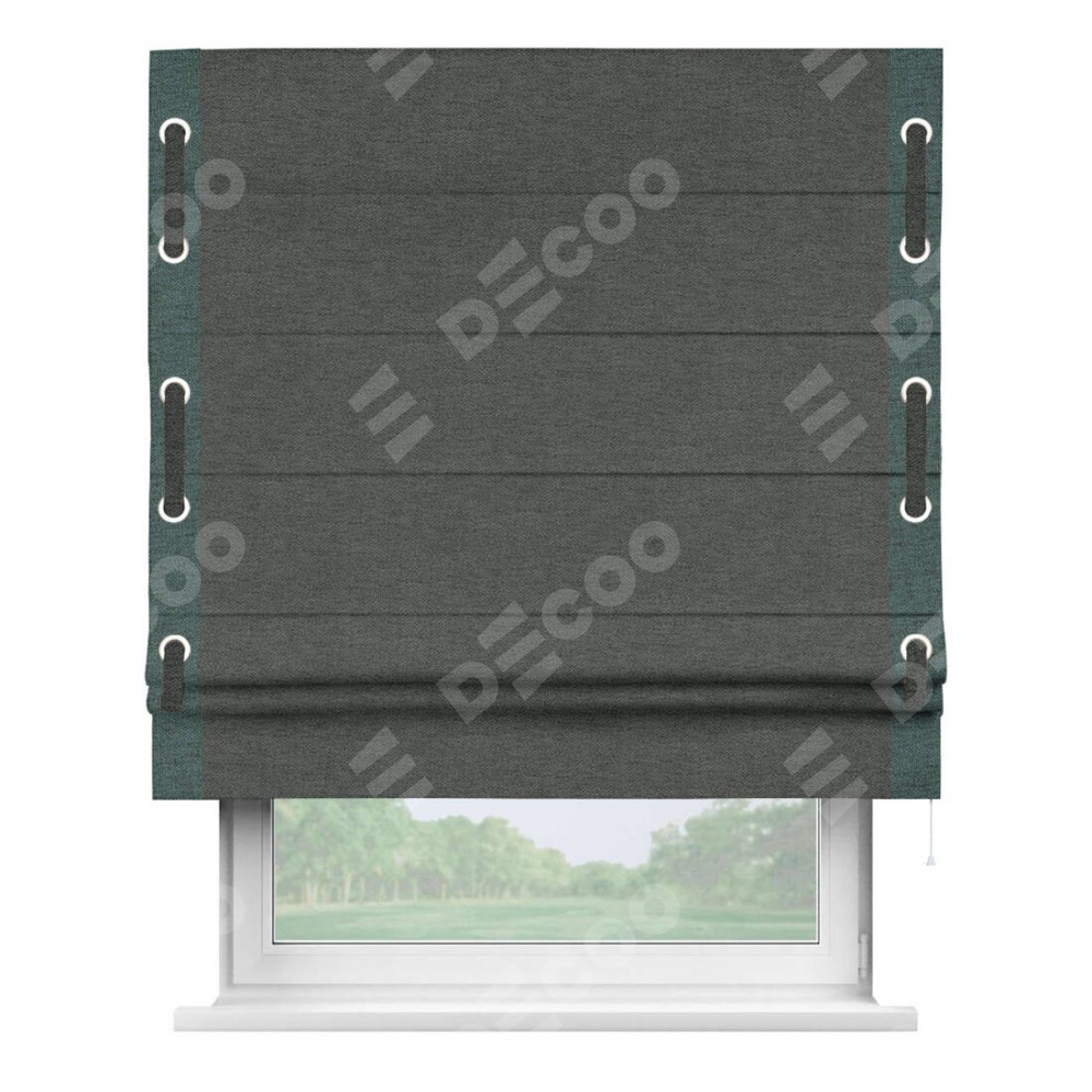 Римская штора «Кортин» с кантом Стрим Дуо (люверсы с пояском), для проема, ткань стиф димаут графит