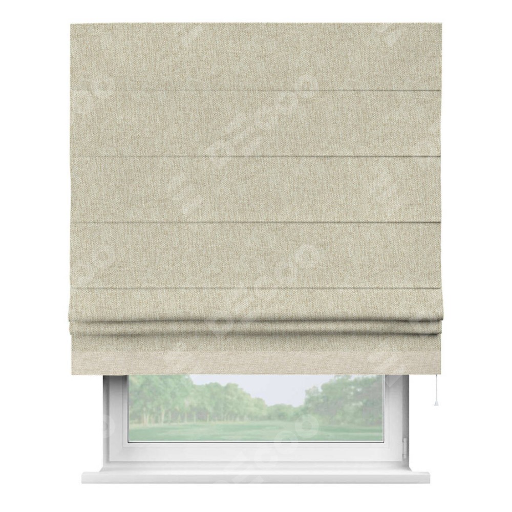 Римская штора производителя «Cortin», используется для проёма, пошита из ткани стиф димаут светло-бежевый, артикул 18084. Отделка шторы кантом «Джестер», ткань для канта используется из стифа разной расцветки на выбор. Имеет универсальный механизм и подходит для монтажа: на потолок, на стену и в нишу.