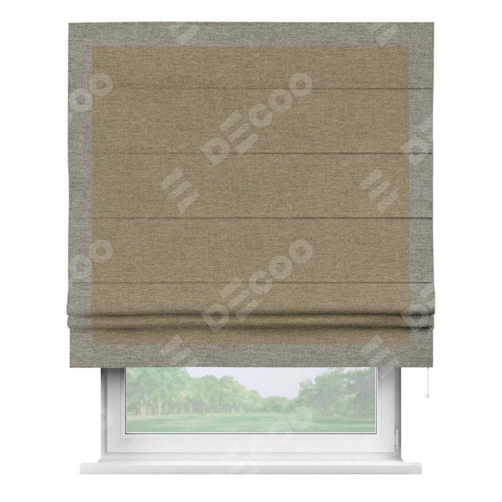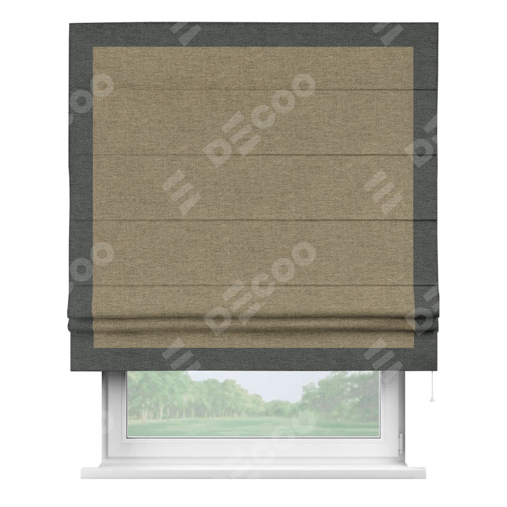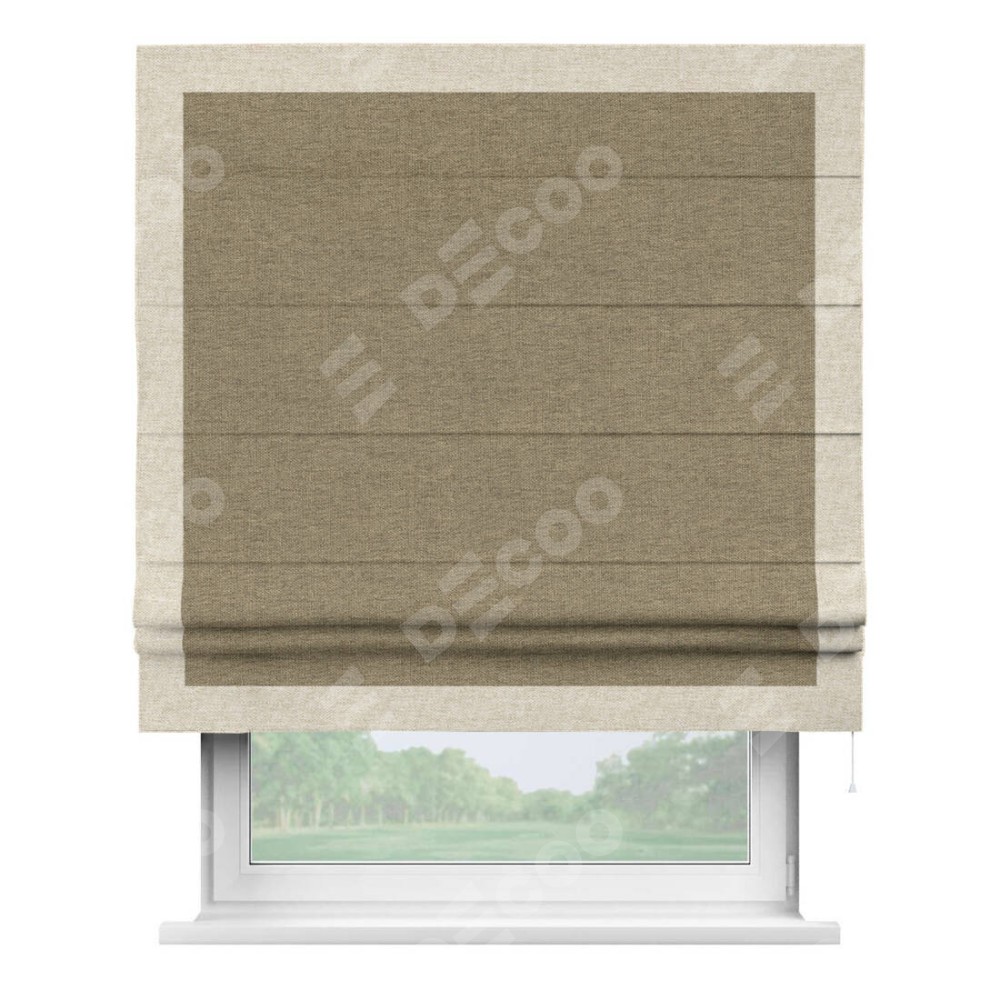 Римская штора «Кортин» с кантом Чесс, для проема, ткань стиф димаут тёмно-бежевый