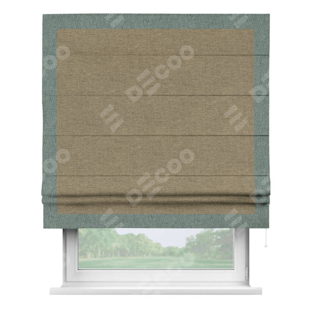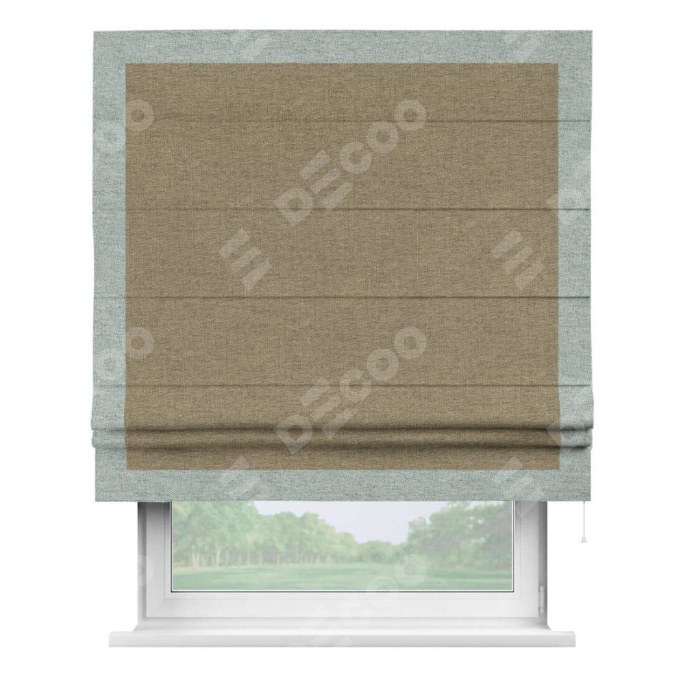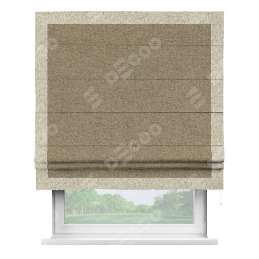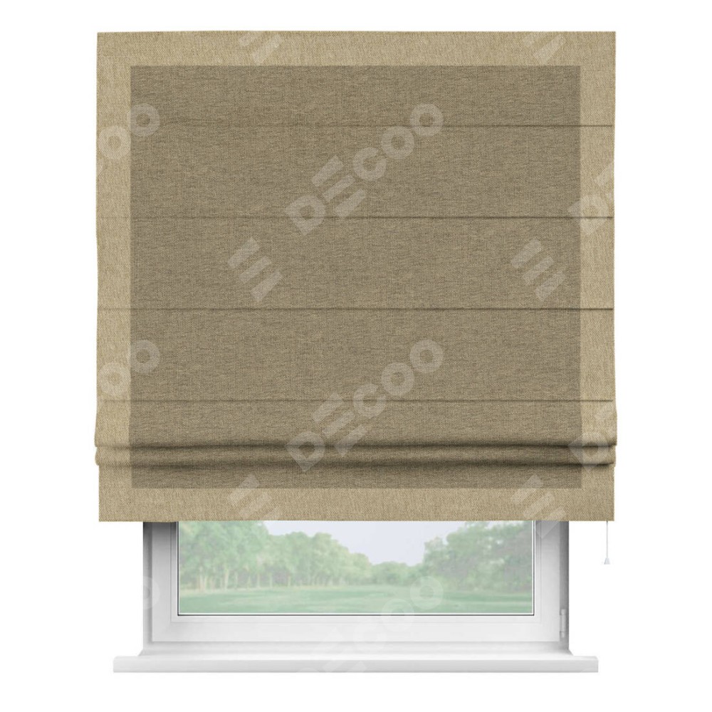 Римская штора «Кортин» с кантом Чесс, для проема, ткань стиф димаут тёмно-бежевый