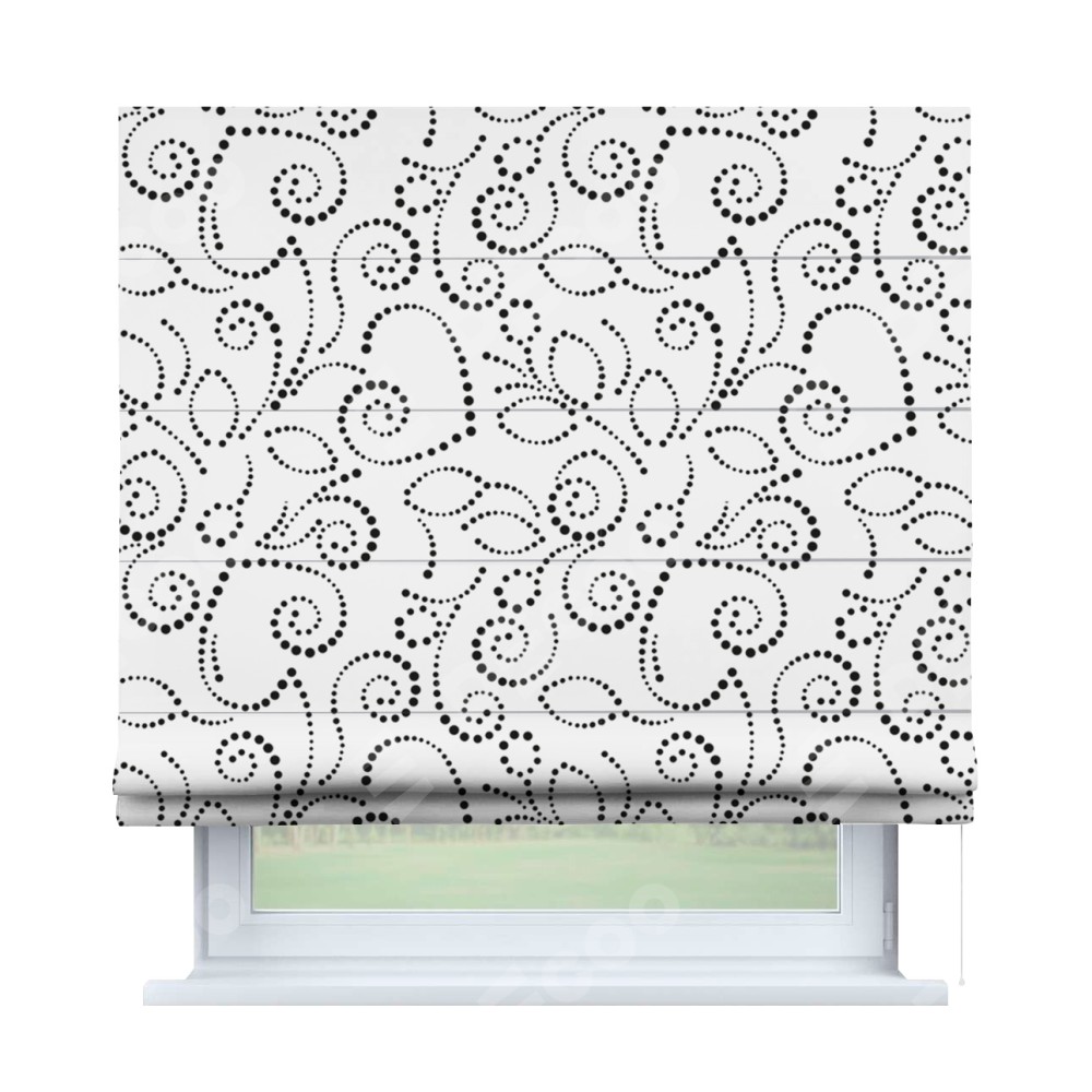Римская штора производителя «Cortin», используется для проёма, пошита из ткани блэкаут с нанесением сублимационной печати «Точечный узор». Имеет универсальный механизм и подходит для монтажа: на потолок, на стену и в нишу.