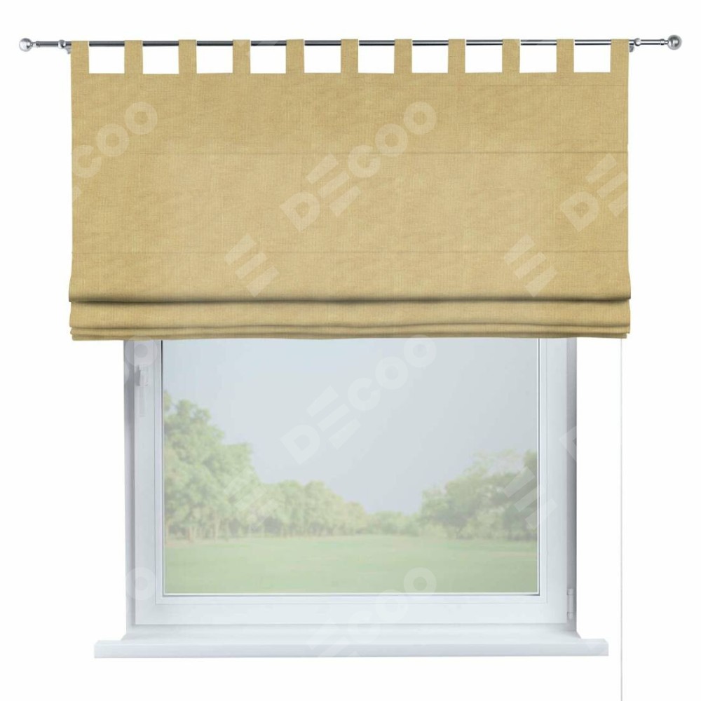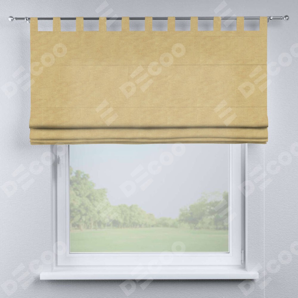 Римская штора производителя «Cortin», используется для проёма, пошита из ткани канвас абрикосовый, артикул ткани v-448. Данная модель пошита на петлях, комплектуется на выбор круглым карнизом и подходит для монтажа на стену. Римская штора на петлях имеет простую систему регулировки высоты, отличительным преимуществом данной модели является простой способ монтажа. Достаточно повесить ее на трубу и штора готова!