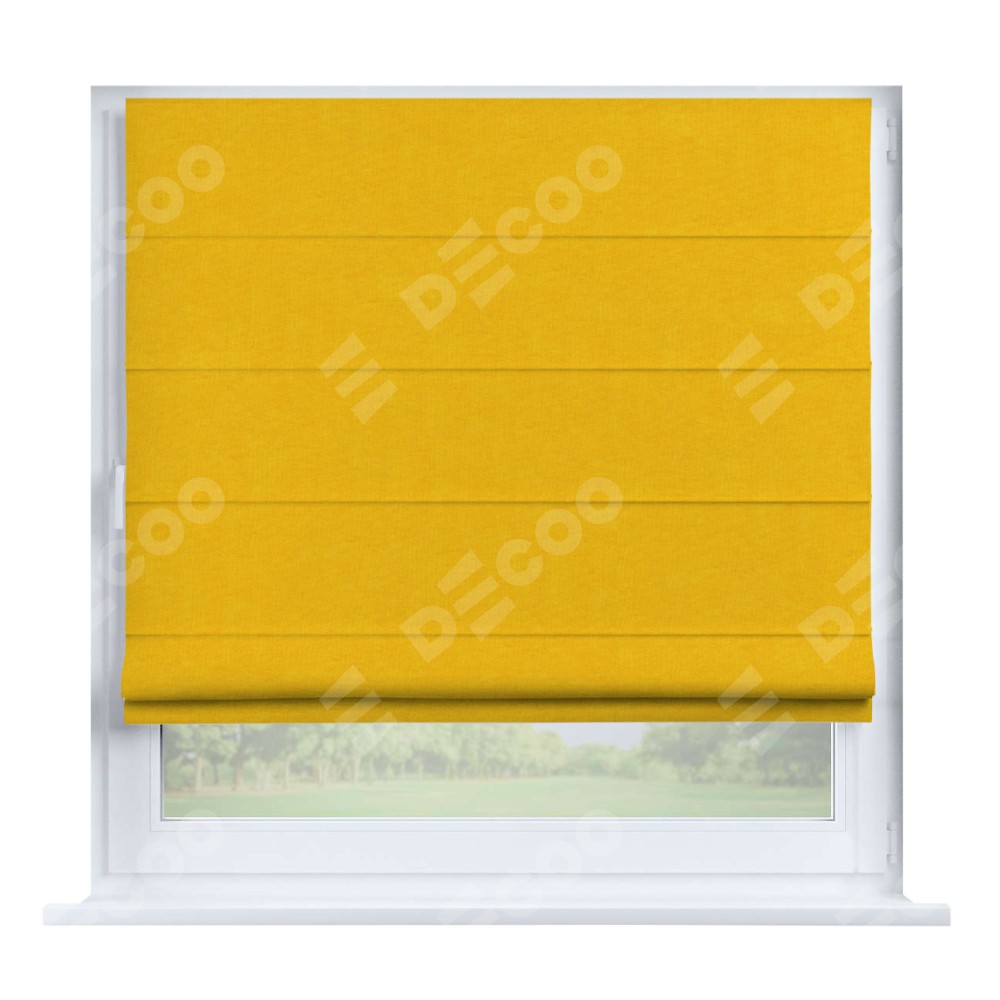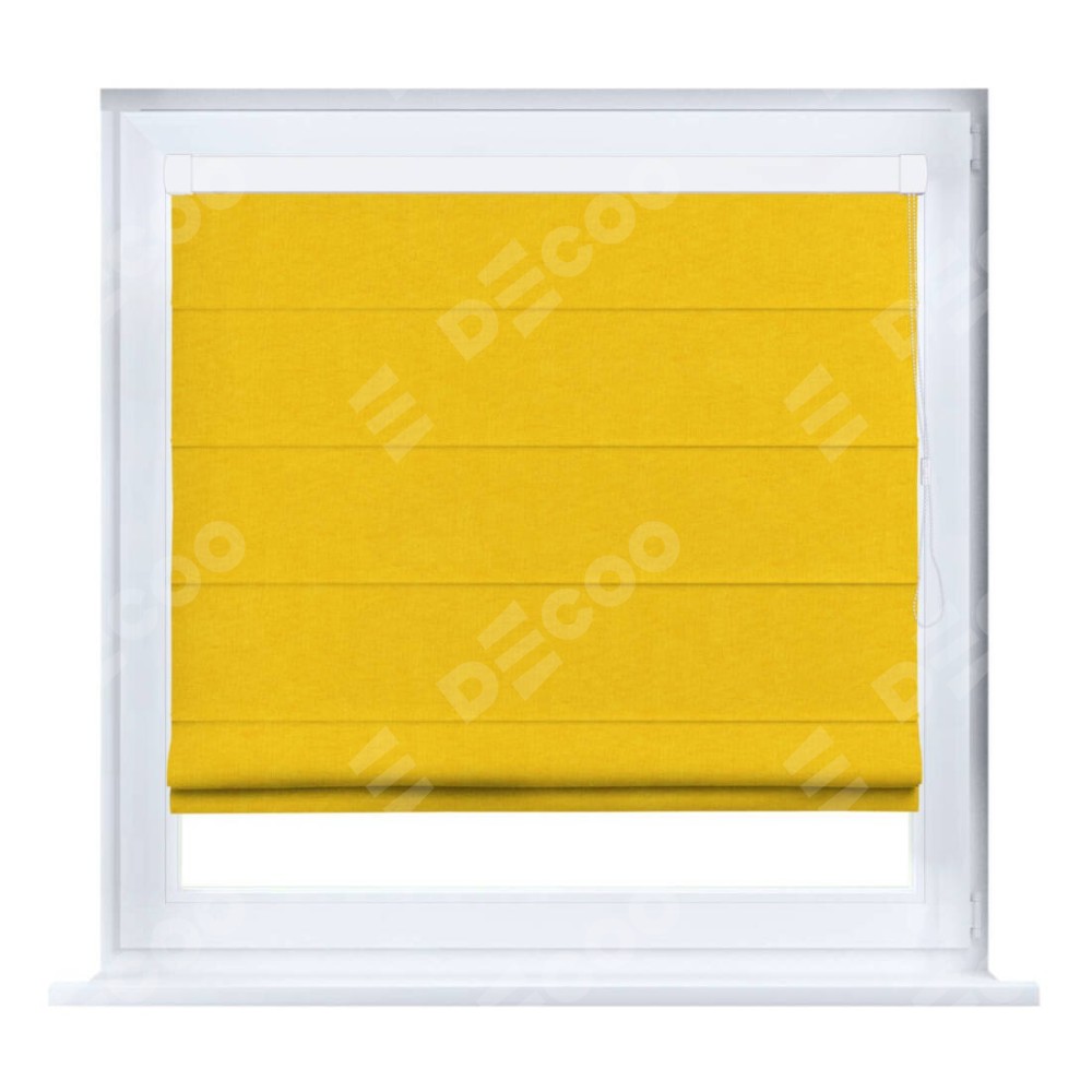 Римская штора производителя «Cortin», устанавливается на створку окна, пошита из ткани канвас желтый, артикул v-344. Штора шьётся по индивидуальным размерам, для данного типа римской шторы возможная ширина от 35 до 150 см., высота до 250 см.
