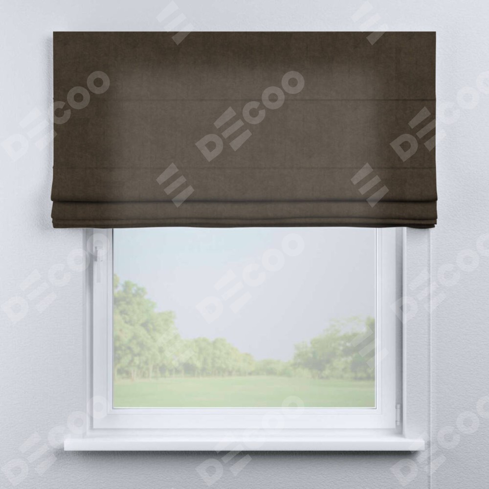 Римская штора производителя «Cortin», используется для проёма, пошита из ткани канвас коричневый, артикул ткани v-29. Имеет универсальный механизм и подходит для монтажа: на потолок, на стену и в нишу.