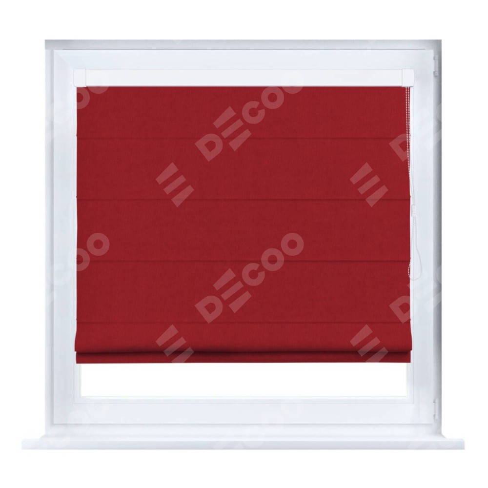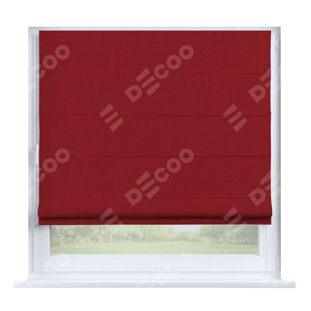 Римская штора производителя «Cortin», устанавливается на створку окна, пошита из ткани канвас красный, артикул v-113. Штора шьётся по индивидуальным размерам, для данного типа римской шторы возможная ширина от 35 до 150 см., высота до 250 см.