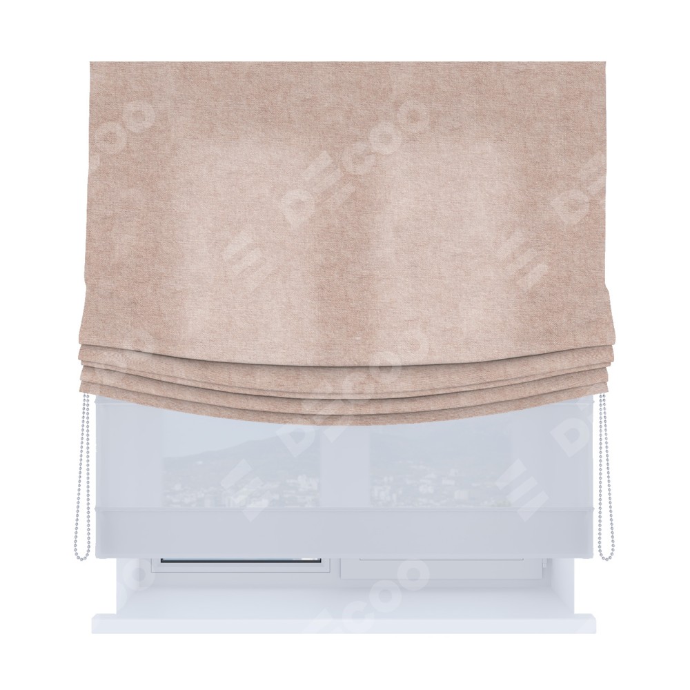 Основная ткань римской шторы не имеет горизонтальных вставок и нижнего отвеса. Это позволяет ткани произвольно драпироваться в свободные мягкие складки.
