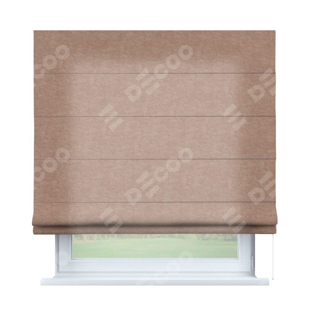 Римская штора производителя «Cortin», используется для проёма, пошита из ткани канвас розовая пудра, артикул ткани v-34. Имеет универсальный механизм и подходит для монтажа: на потолок, на стену и в нишу.
