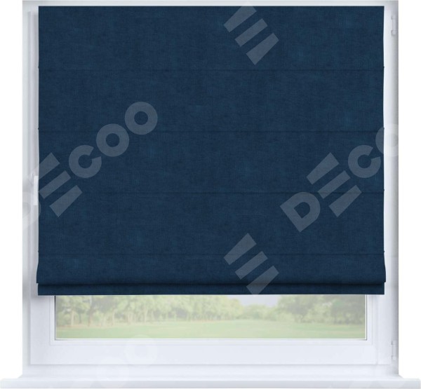 Римская штора производителя «Cortin», устанавливается на створку окна, пошита из ткани канвас синий, артикул v-573. Штора шьётся по индивидуальным размерам, для данного типа римской шторы возможная ширина от 35 до 150 см., высота до 250 см.