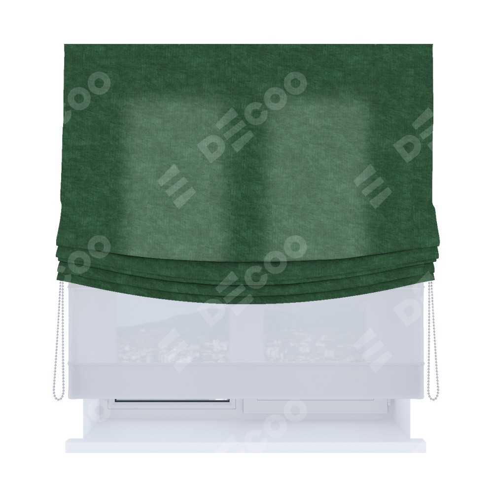 Римская штора «Кортин», канвас тёмно-зелёный, день-ночь с мягкими складками