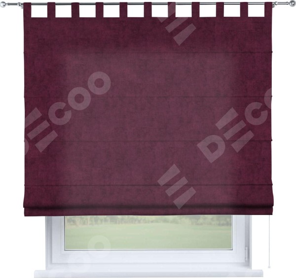 Римская штора производителя «Cortin», используется для проёма, пошита из ткани канвас фиолетовый, артикул ткани v-99. Данная модель пошита на петлях, комплектуется на выбор круглым карнизом и подходит для монтажа на стену. Римская штора на петлях имеет простую систему регулировки высоты, отличительным преимуществом данной модели является простой способ монтажа. Достаточно повесить ее на трубу и штора готова!