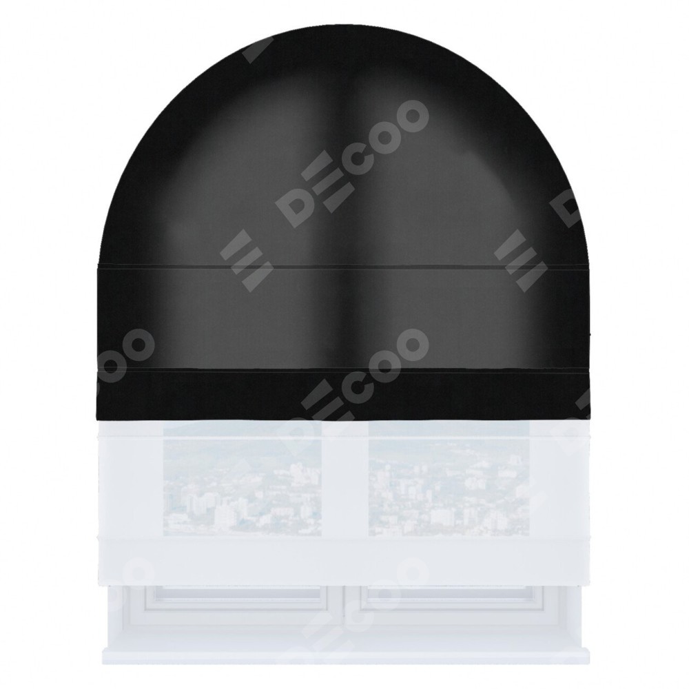 Римская штора день-ночь производителя «Cortin», используется для арочного проёма, пошита из двух полотен, с лицевой стороны канвас черный артикул v-194, вторая ткань тюль (по стандарту комплектуется тюль белого цвета артикул V-01). Штора шьётся по индивидуальным размерам, для данного типа римской шторы возможная ширина от 60 до 300 см. Удобное управление каждой шторой отдельно.