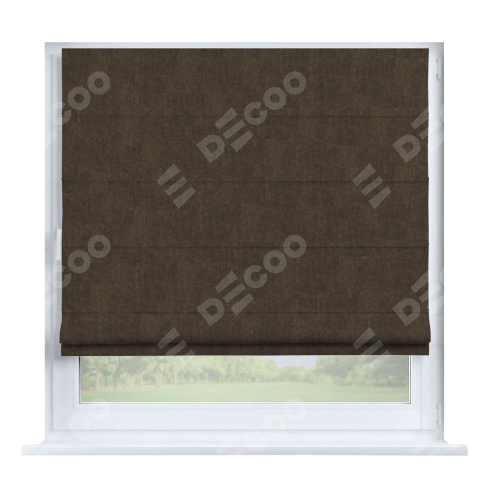Римская штора производителя «Cortin», устанавливается на створку окна, пошита из ткани канвас шоколадный, артикул v-193. Штора шьётся по индивидуальным размерам, для данного типа римской шторы возможная ширина от 35 до 150 см., высота до 250 см.