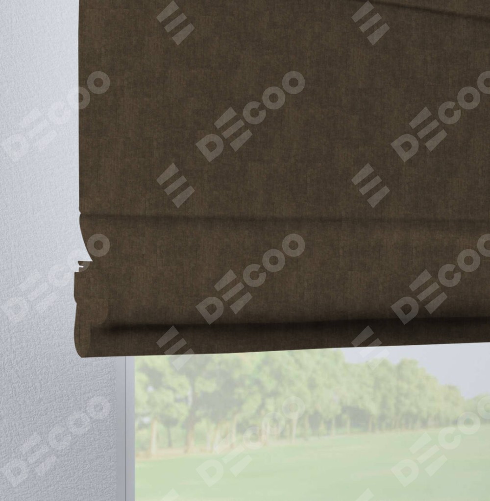 Римская штора производителя «Cortin», используется для проёма, пошита из ткани канвас шоколадный, артикул ткани v-193. Данная модель пошита на петлях, комплектуется на выбор круглым карнизом и подходит для монтажа на стену. Римская штора на петлях имеет простую систему регулировки высоты, отличительным преимуществом данной модели является простой способ монтажа. Достаточно повесить ее на трубу и штора готова!