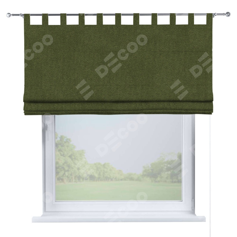 Римская штора производителя «Cortin», используется для проёма, пошита из ткани лён димаут салатовый, артикул ткани 91002. Данная модель пошита на петлях, комплектуется на выбор круглым карнизом и подходит для монтажа на стену. Римская штора на петлях имеет простую систему регулировки высоты, отличительным преимуществом данной модели является простой способ монтажа. Достаточно повесить ее на трубу и штора готова!