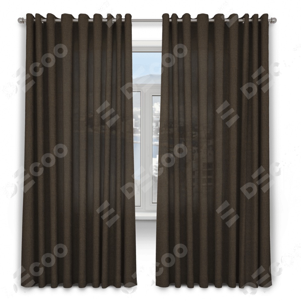 Комплект прямых штор, от производителя «Cortin», пошиты из ткани лён тёмно-коричневый, артикул ткани 53444. Данная модель пошита на люверсах, комплектуется на выбор круглым карнизом и подходит для монтажа на стену. Прямые шторы на люверсах шьются по стандарту с коэффициентом 1/2 (на 100 см. ширины проёма 200 см. ширины ткани), отличительным преимуществом данной модели является простой способ монтажа. Достаточно повесить ее на трубу и штора готова!