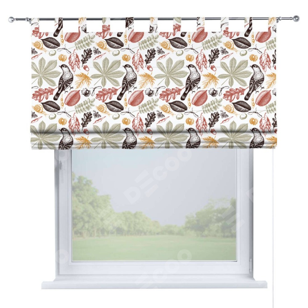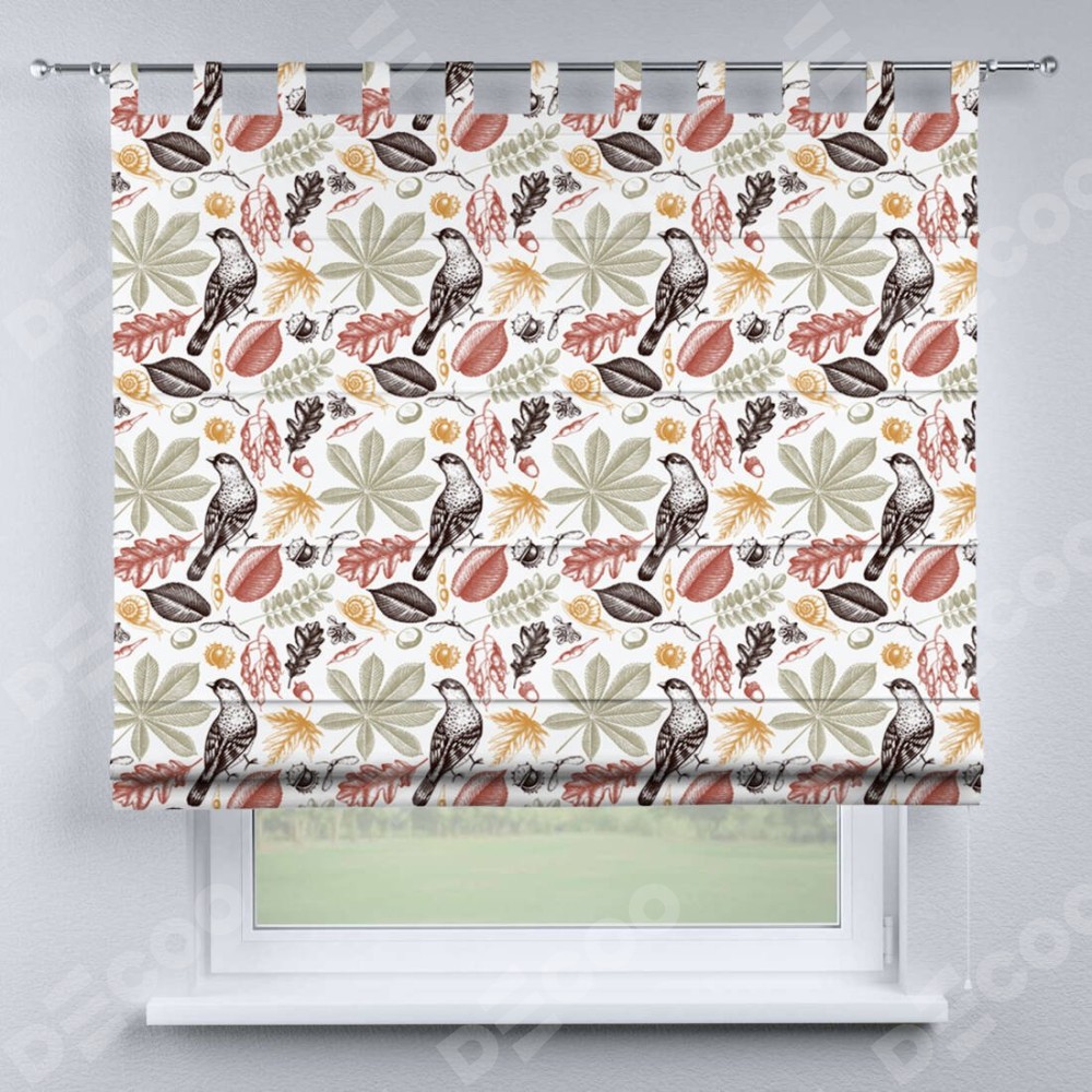 Римская штора производителя «Cortin», используется для проёма, пошита из ткани блэкаут с нанесением сублимационной печати «Краски осени». Данная модель пошита на петлях, комплектуется на выбор круглым карнизом и подходит для монтажа на стену. Римская штора на петлях имеет простую систему регулировки высоты, отличительным преимуществом данной модели является простой способ монтажа. Достаточно повесить ее на трубу и штора готова!