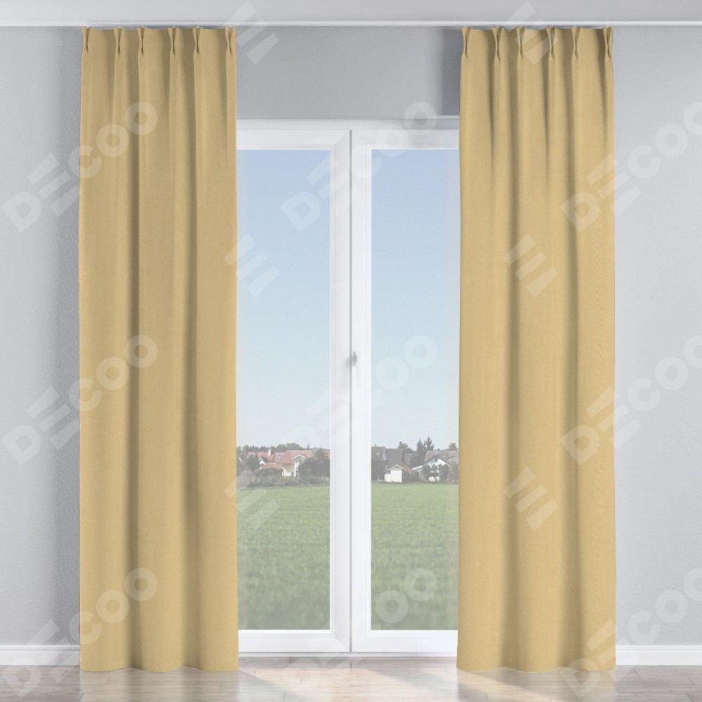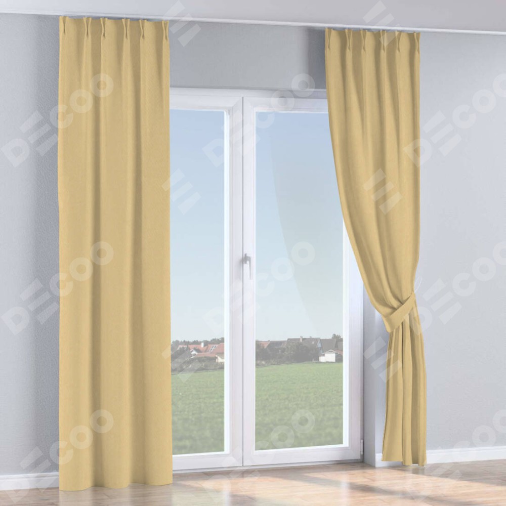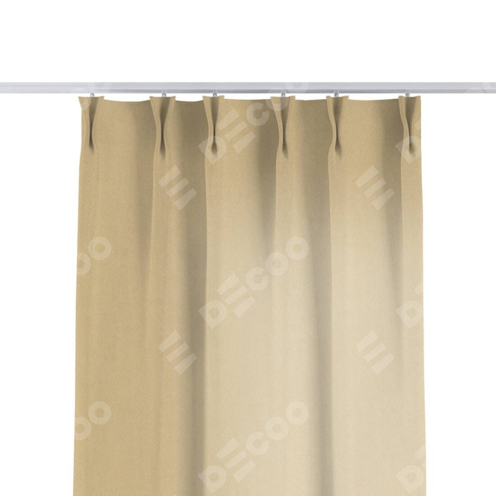 Комплект прямых штор, от производителя «Cortin», пошиты из ткани канвас бежевый, артикул ткани v-96. С изнаночной стороны в верхней части штор пристрачивается шторная лента с декоративными складками «Кустик». Для создания элегантных складок прямые шторы шьются по стандарту с коэффициентом 1:2 (на 100 см. ширины проёма 200 см. ширины ткани).