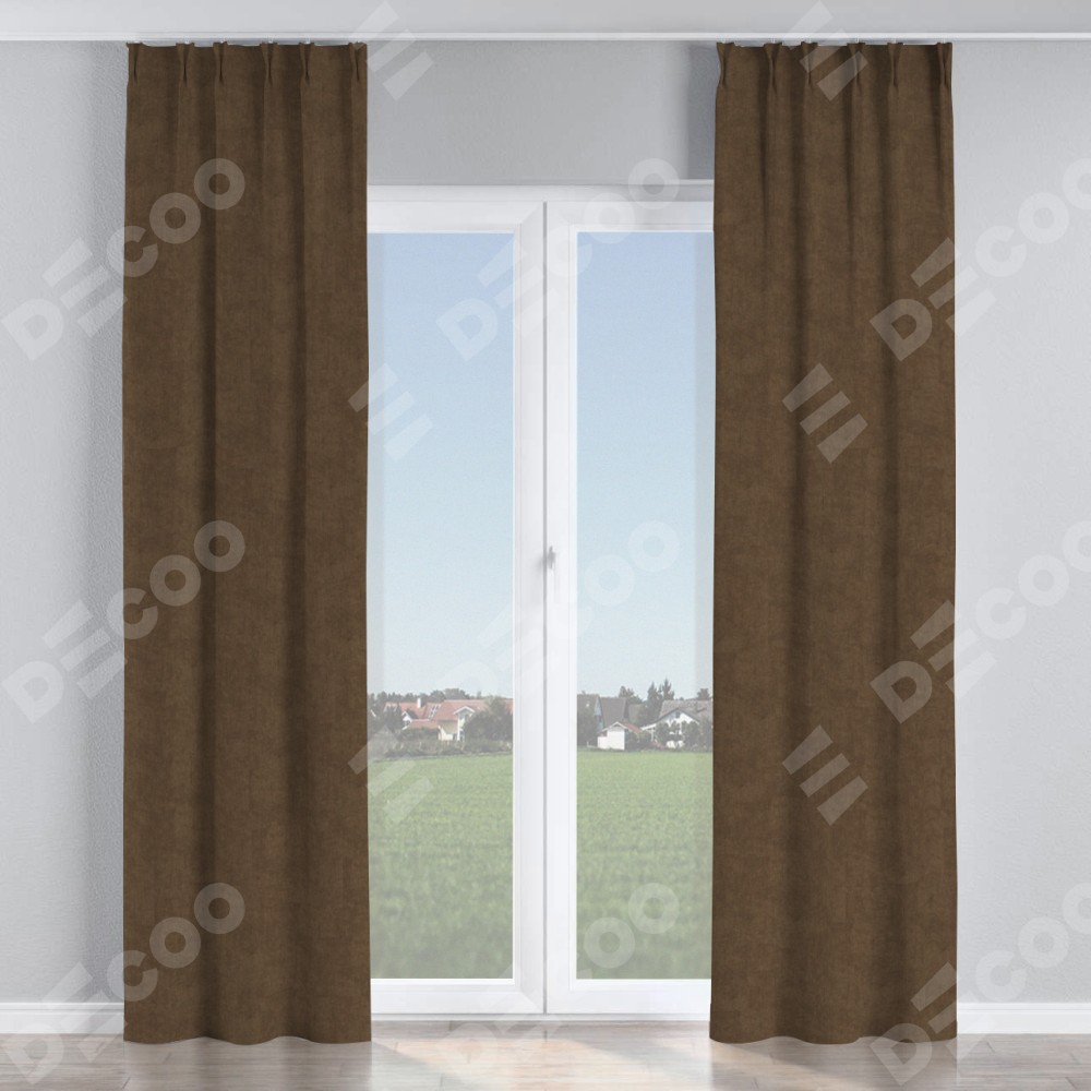 Комплект прямых штор, от производителя «Cortin», пошиты из ткани канвас коричневый, артикул ткани v-29. С изнаночной стороны в верхней части штор пристрачивается шторная лента с декоративными складками «Кустик». Для создания элегантных складок прямые шторы шьются по стандарту с коэффициентом 1:2 (на 100 см. ширины проёма 200 см. ширины ткани).