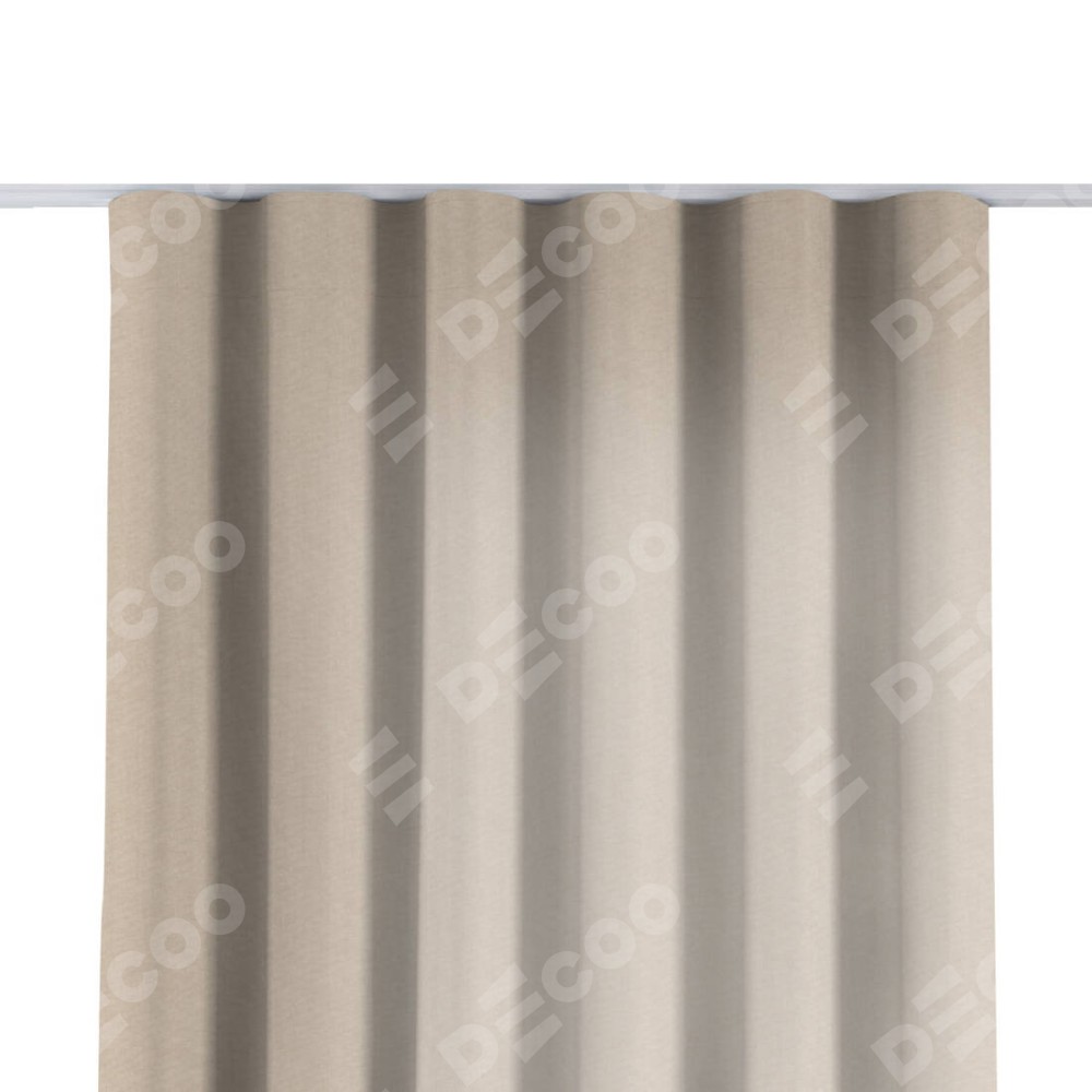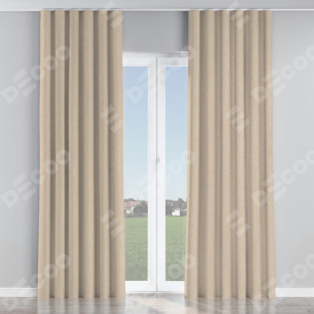 Комплект прямых штор, от производителя «Cortin», пошиты из ткани канвас кофе с молоком, артикул ткани v-07. С изнаночной стороны в верхней части штор пристрачивается шторная лента с декоративными складками «Волна». Для создания элегантных складок прямые шторы шьются по стандарту с коэффициентом 1:2 (на 100 см. ширины проёма 200 см. ширины ткани).